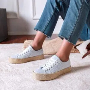 EMBROIDERY ANGLAISE HESSIAN TRAINER IN LIGHT BLUE
