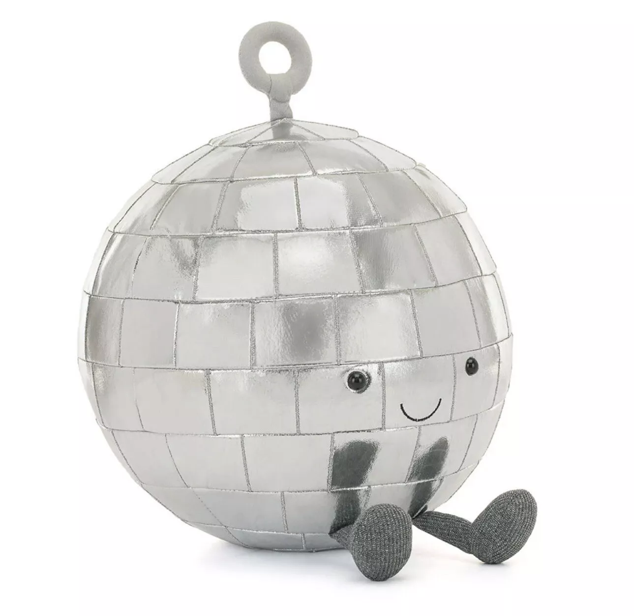 Is it even a party without Amuseables Disco Ball? This dancefloor icon has padded silver patches for all-round glamour. With a grey suedette hanger, friendly smile and sparkly jersey dancing boots, this boogie wonder is a stunning centrepiece.