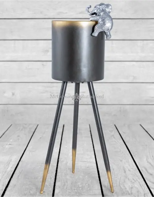 ANTIQUED SILVER HANGING ELEPHANT POT DECOR