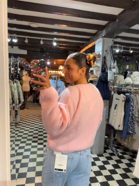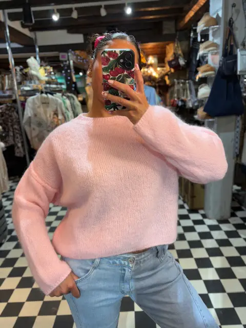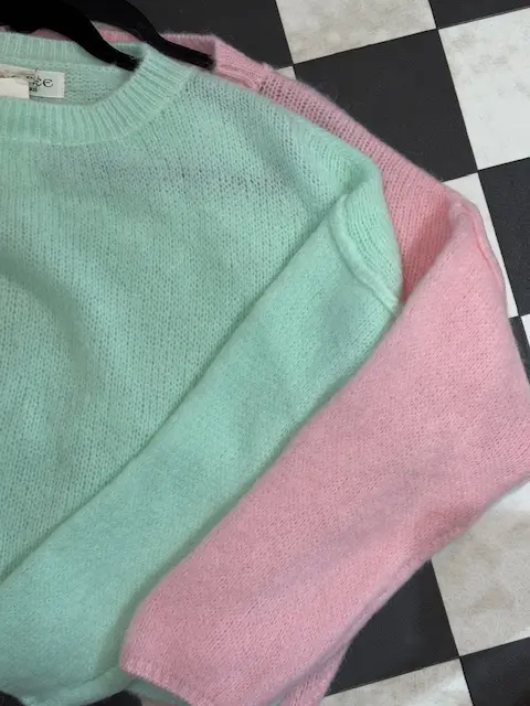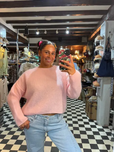 Gorgeous soft knit baby alpaca wool blend jumpers are just so comfy and cosy. Nice on the skin, in 2 lovely spring colours. Could be layered. Slightly cropped.