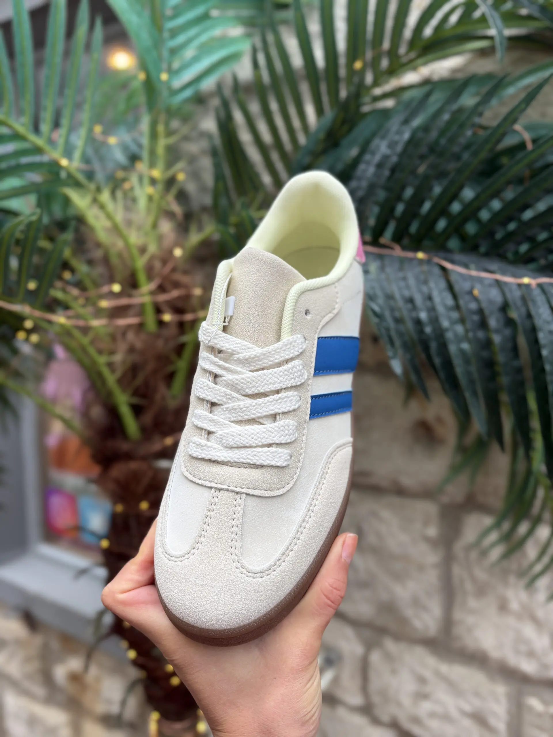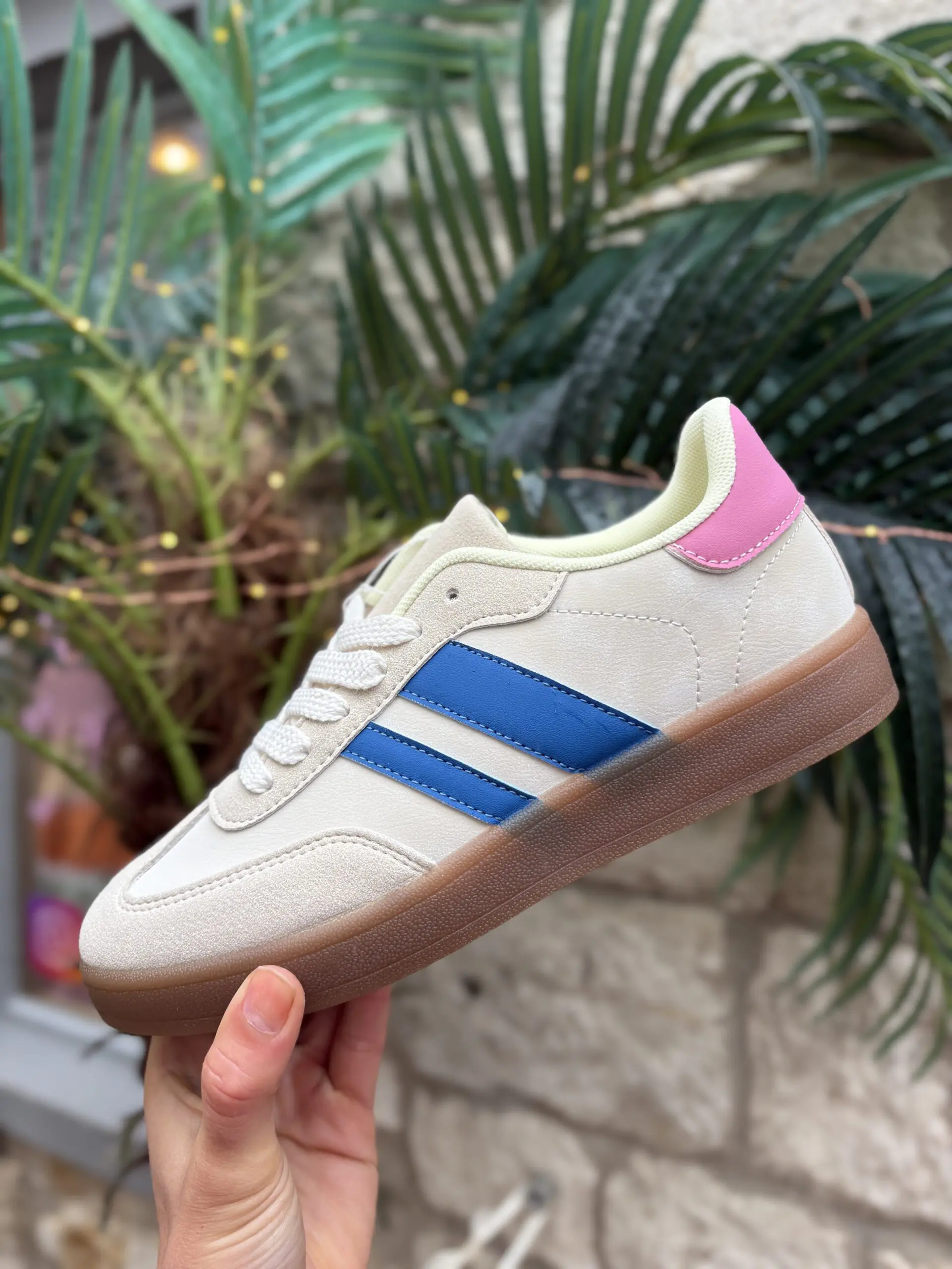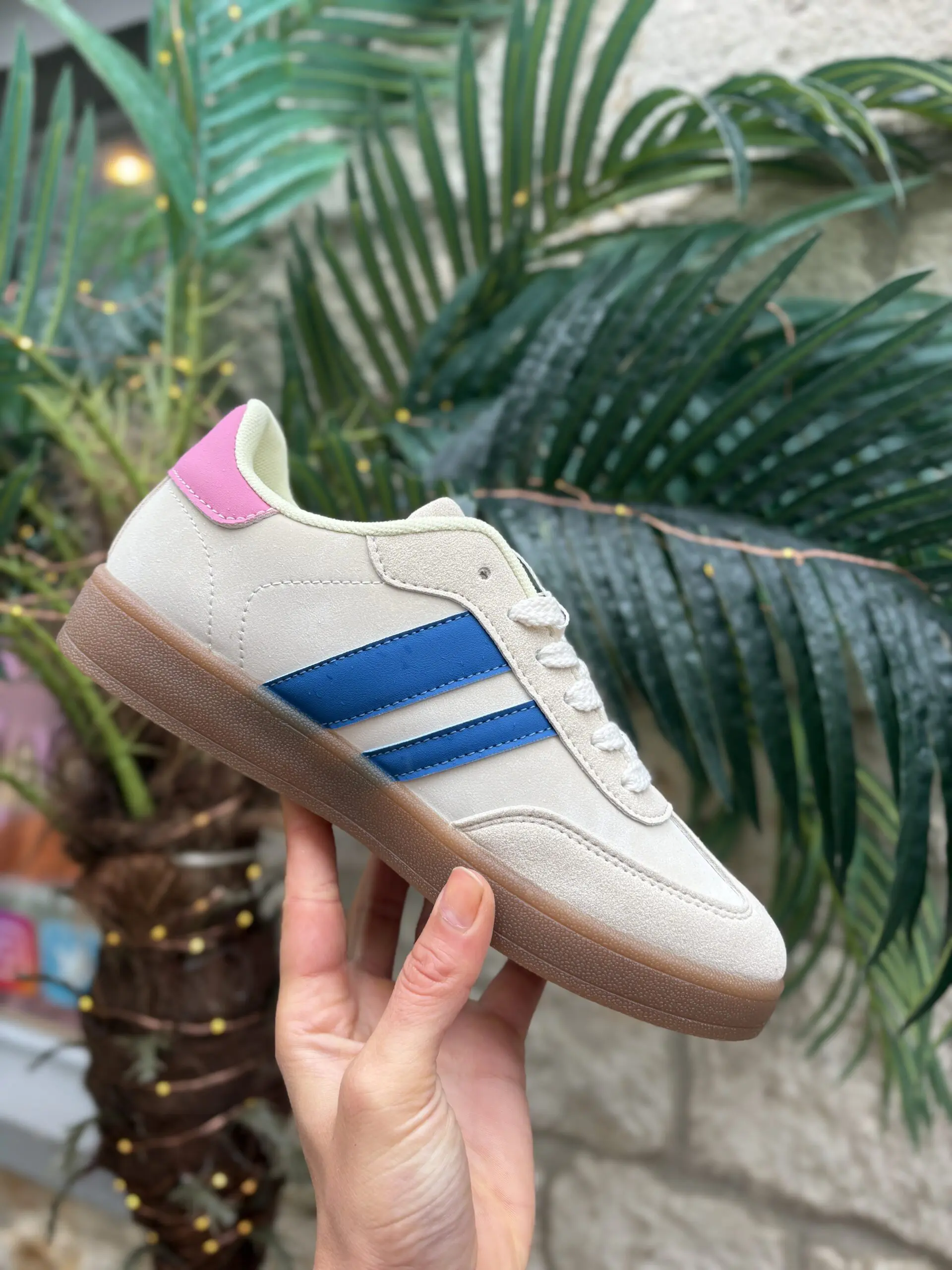 Beige Trainer with Pink and Blue