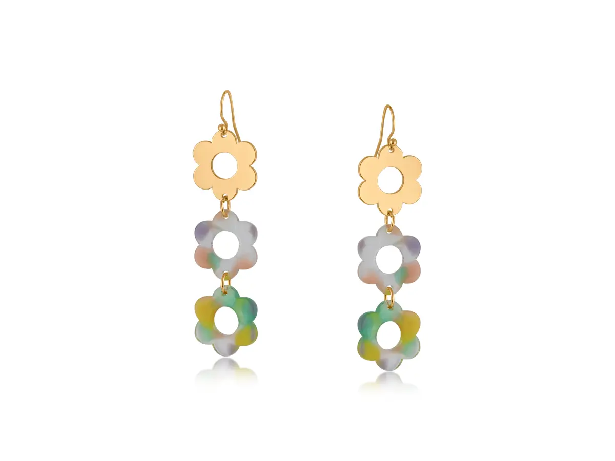 Big Metal London Lola Long Dange Metal And Resin Floral Earrings