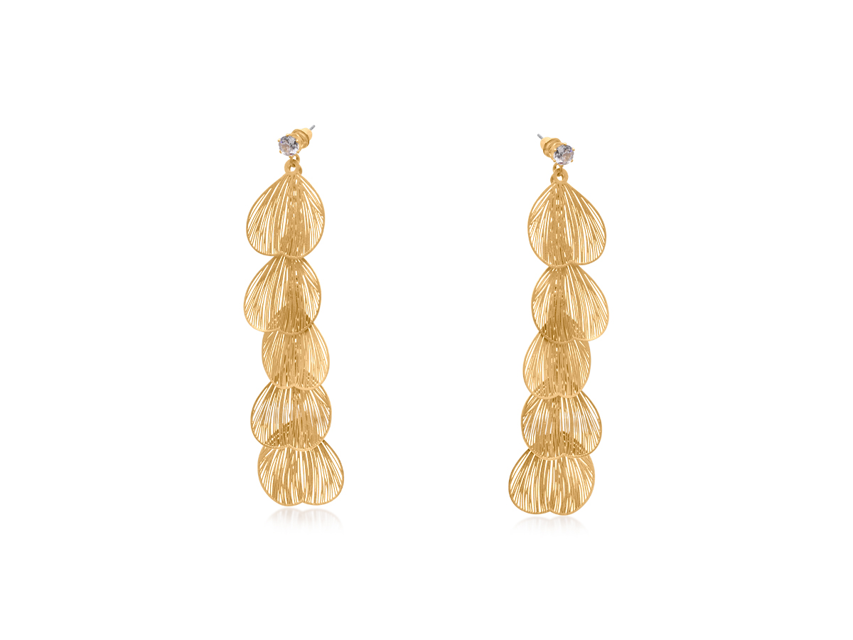 Big Metal London Malena Feather Long Dangle Earrings Gold