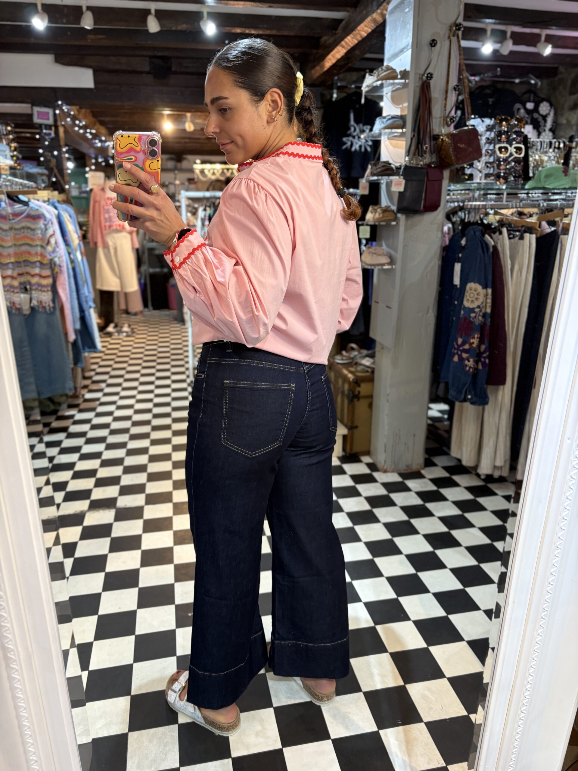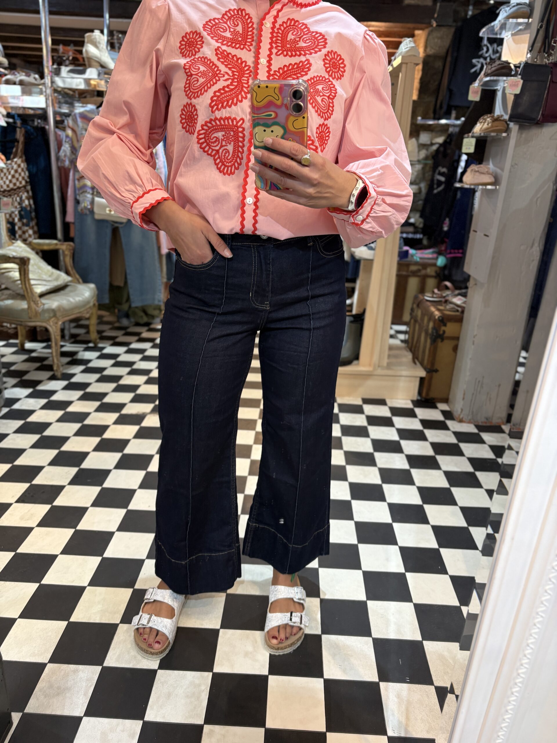 Beautiful dark blue denim jeans with a cropped bell style cut leg. Lovely and lightweight, super comfortable with a lot of stretch. Perfect for those warmer months.