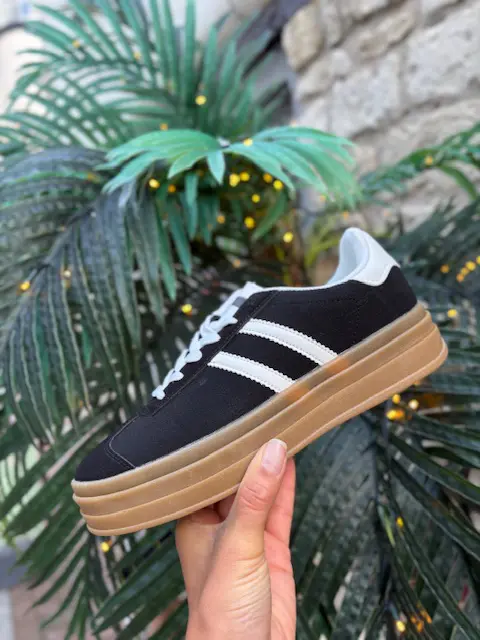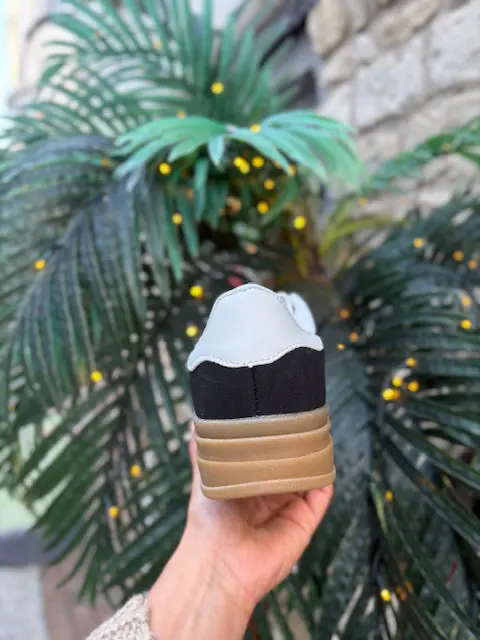 New Gumsole platform trainers in a gorgeous black and white colour way! Love this mix of monochrome colours, very easy to style and wear. Comfortable and on trend..