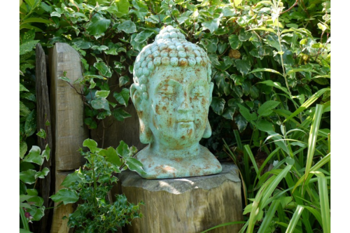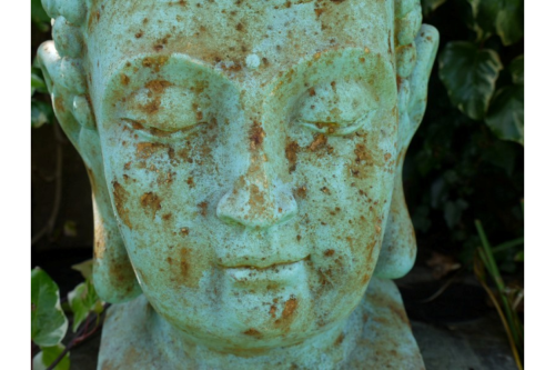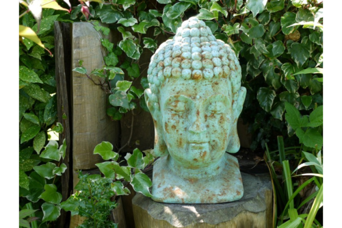 Lovely addition to any home decor inside or out, or as a gift, this large distressed buddha head.