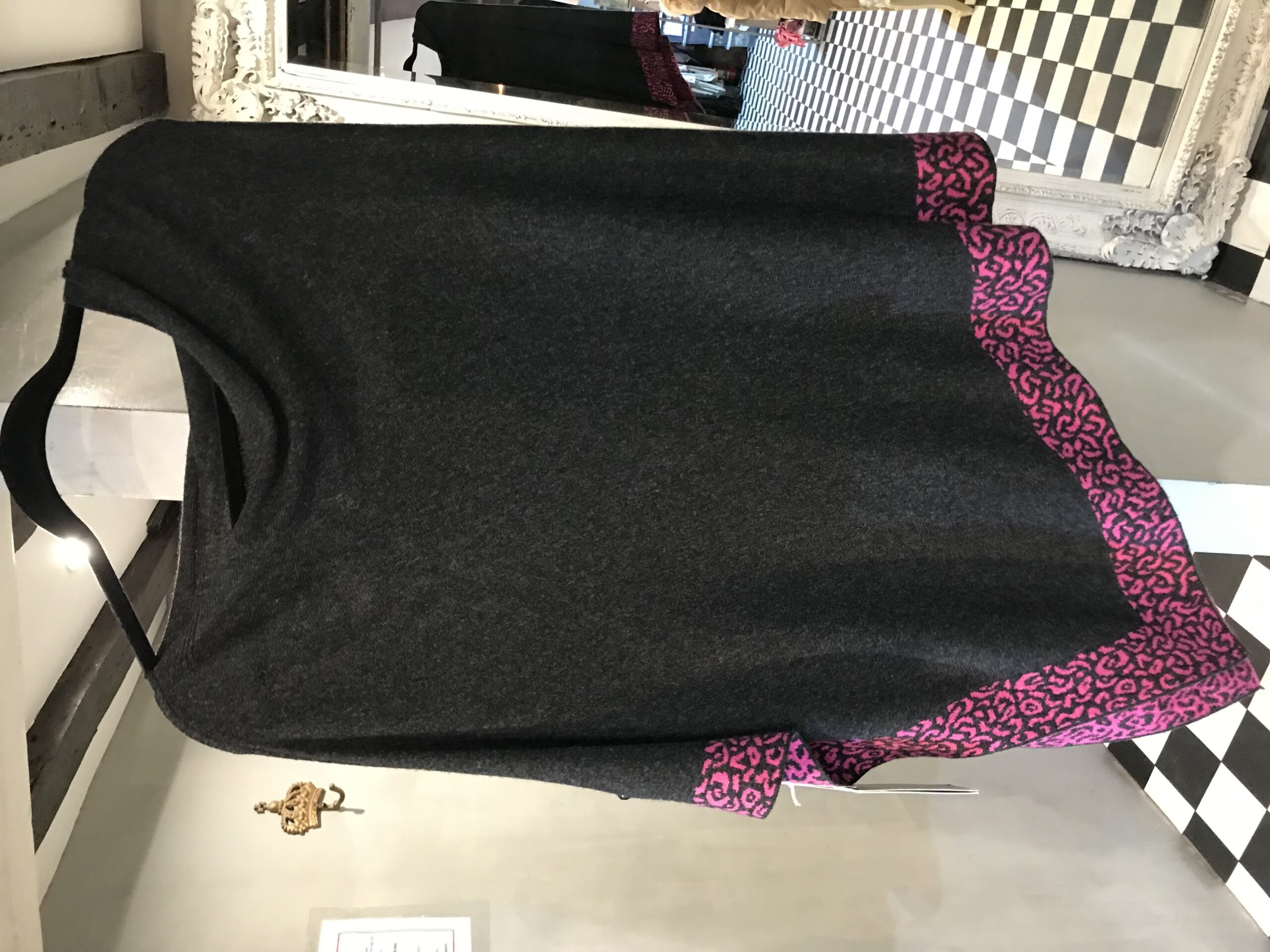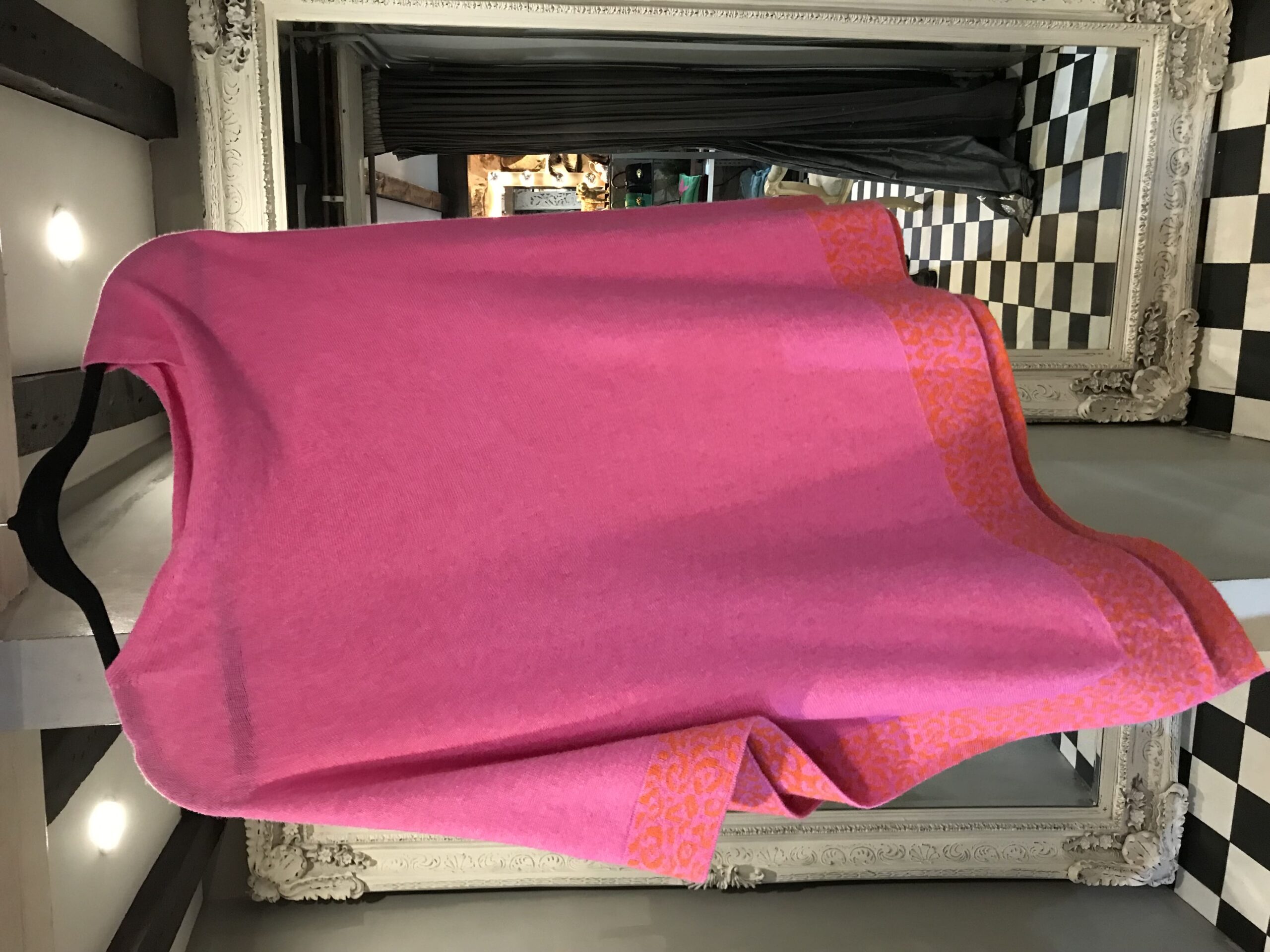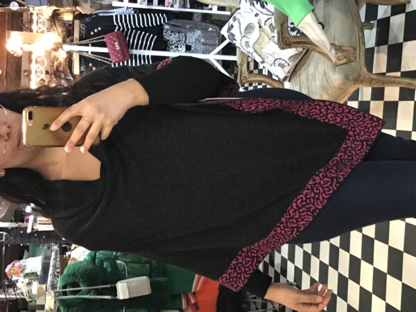 Cashmere Poncho With Leopard Trim