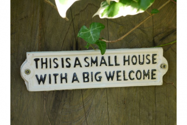 Complete your home with this lovely solid cast iron metal sign. It has black and white enamel on the writing. Perfect gift for anyone or to place within your own home. Can be used decoratively inside or outside.