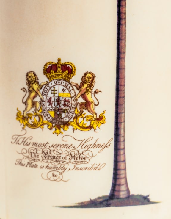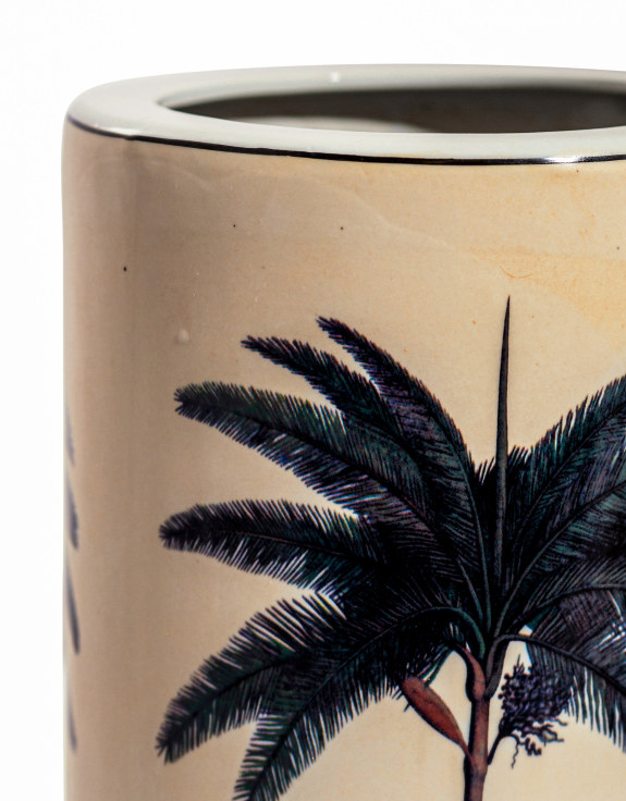 CERAMIC LITHOGRAPH PALM TREE W/ ROYAL SEAL UMBRELLA STAND