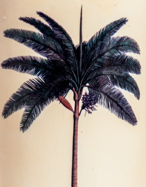 / CERAMIC LITHOGRAPH PALM TREE W/ ROYAL SEAL UMBRELLA STAND