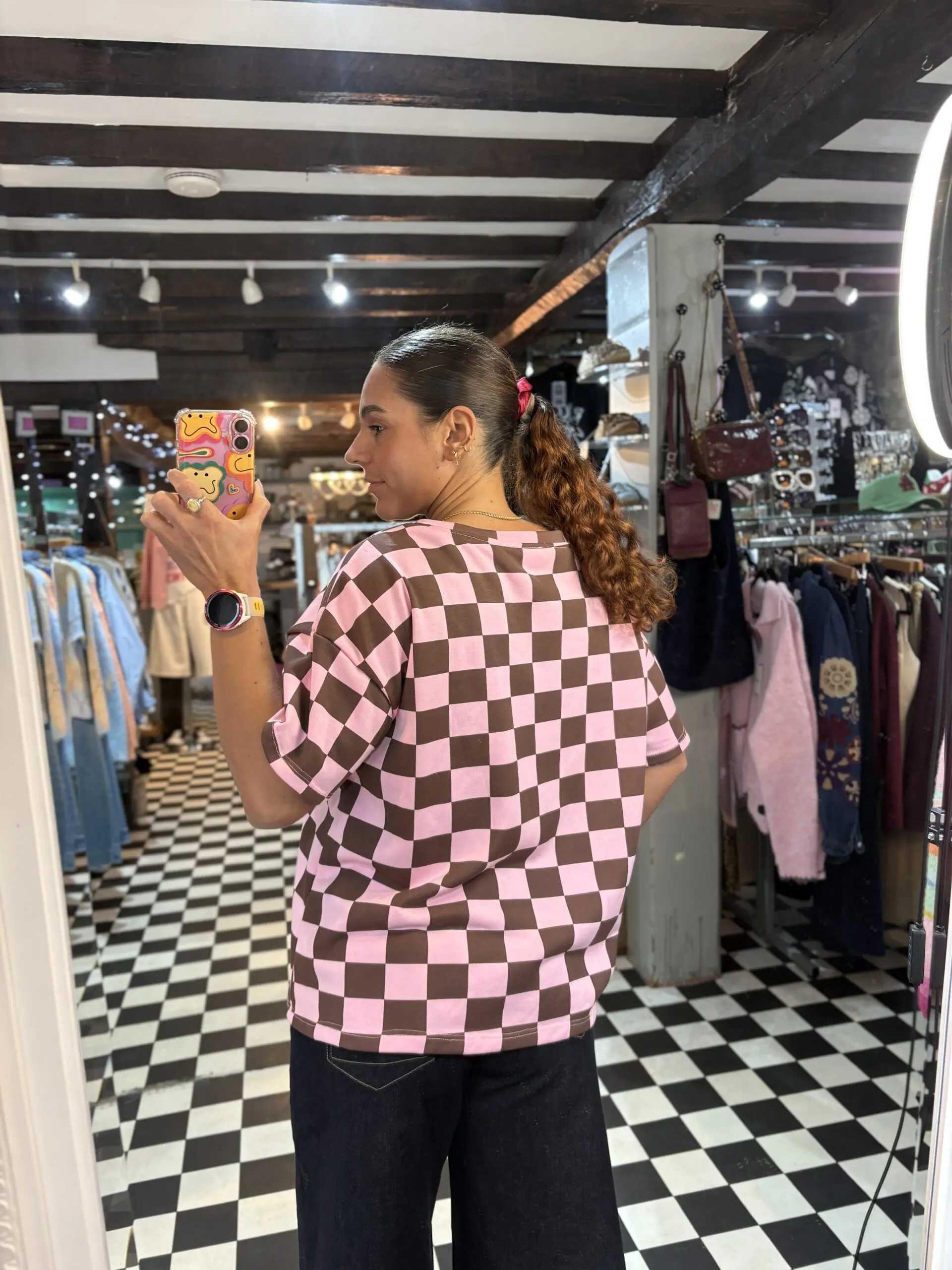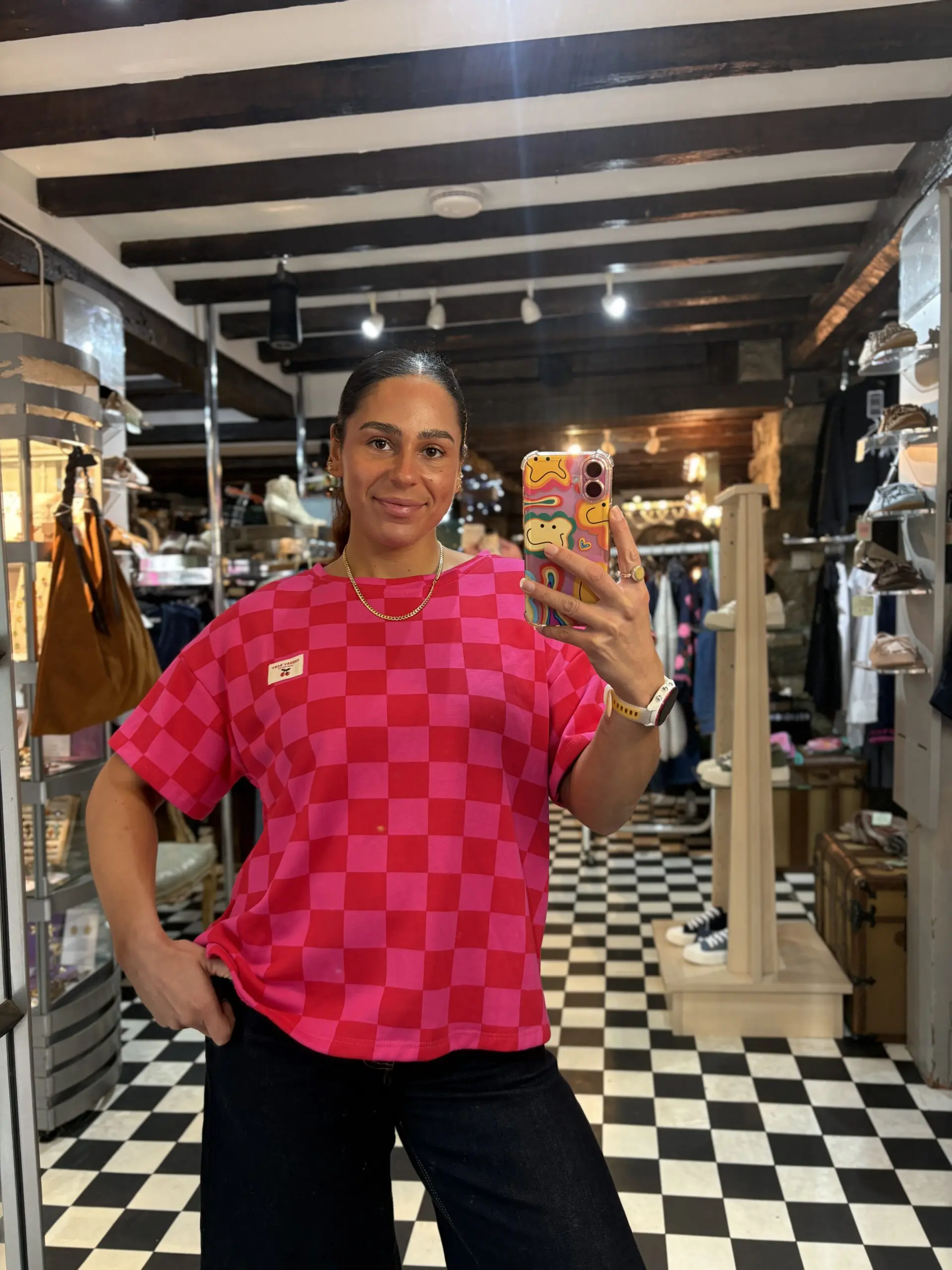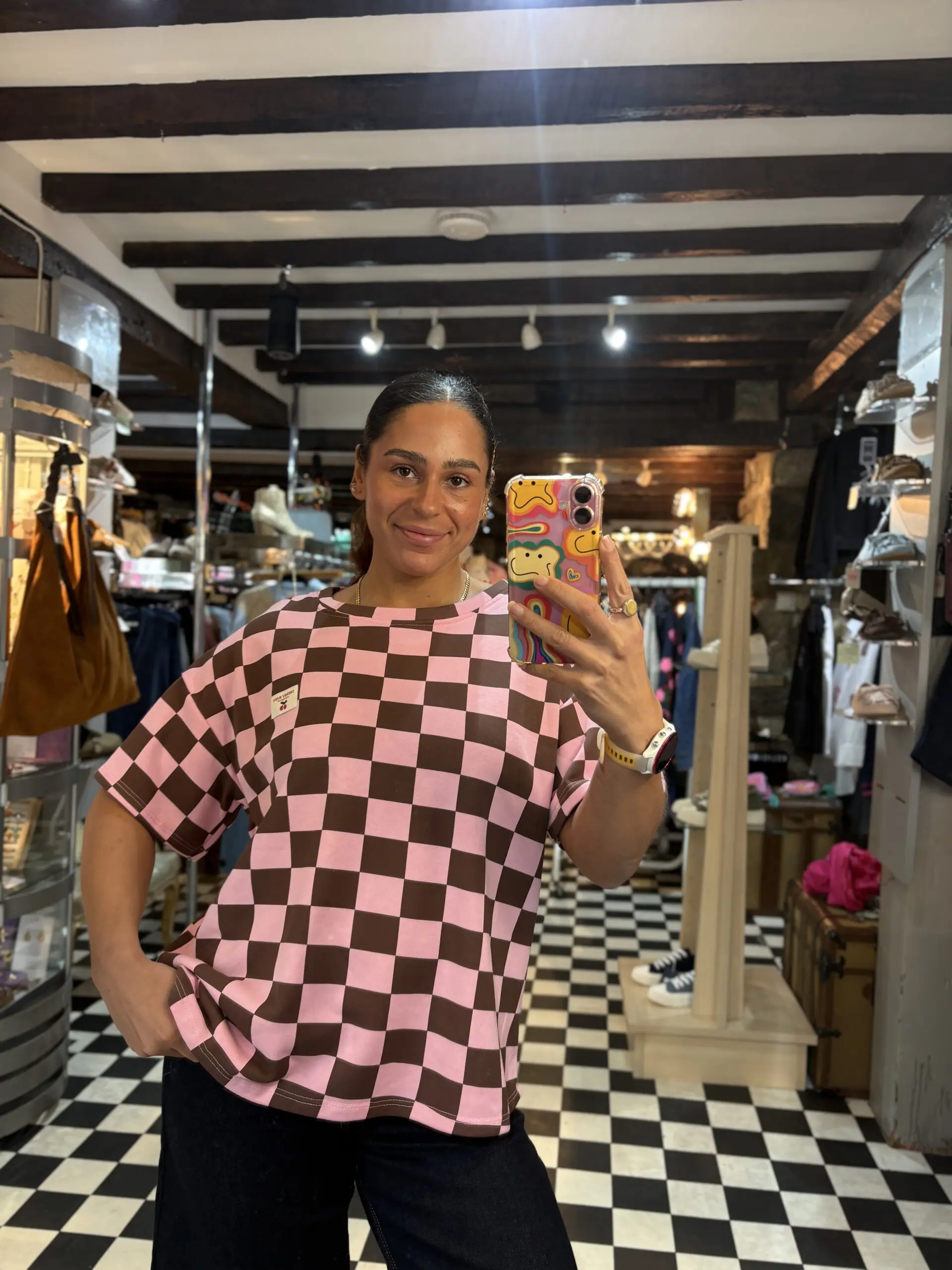 Cute new check print sweatshirt style t shirt features little cherry baby patch on the front. Super comfy and easy to wear. Love both the colourways of this.