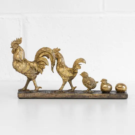 Made from resin with a highly detailed finish it is gold in colour and shows the evolution of a chicken from an egg through to a full grown Rooster.