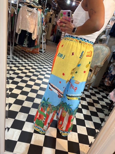 These fun printed trousers definitely bring the summer vibes to your look. Nice and flattering wide fit with pockets. Can be dressed up or kept casual. Perfect for holidays.