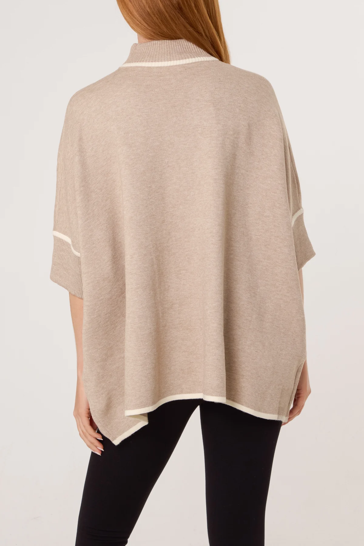 Contrast Hem High Neck Relaxed Jumper