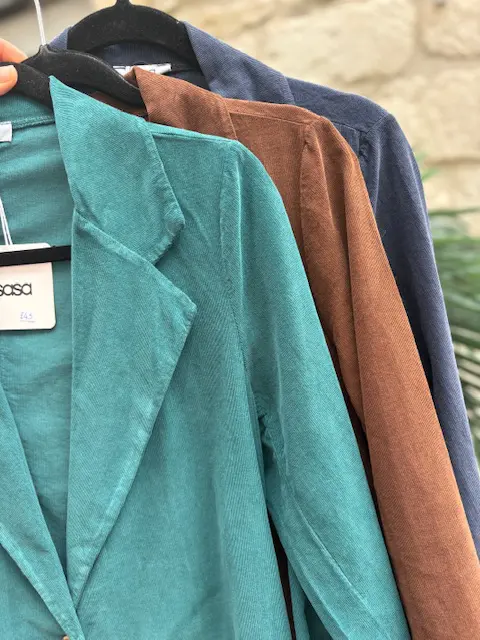 Beautiful new corduroy style blazer jacket. Nice and lightweight makes it easy to layer on those days or evenings you don’t want a big coat. Can be dressed up or down.