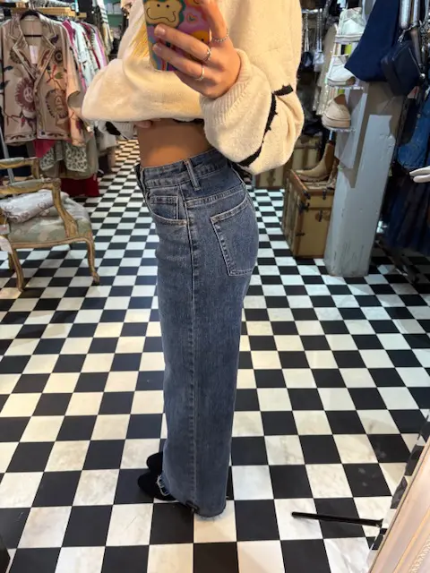 Much like a mom Jean but a bit extra baggy.. once you switch from the skinny Jean lifestyle I’m sure you won’t go back. Mid- low rise, oversize style. In a gorgeous dark denim blue colour.