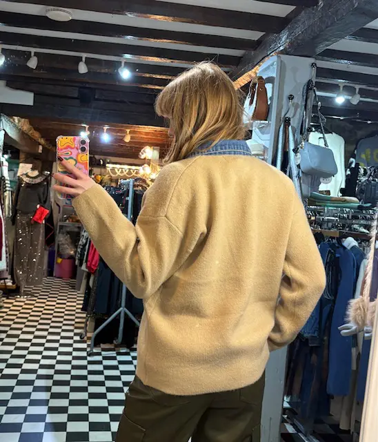 Gorgeous denim style knit jacket perfect to add as an extra layer.