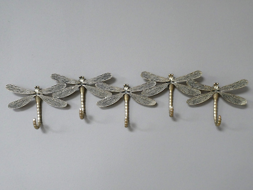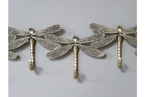 Give your guests somewhere stylish to hang their coats on this antique gold dragonfly hooks.