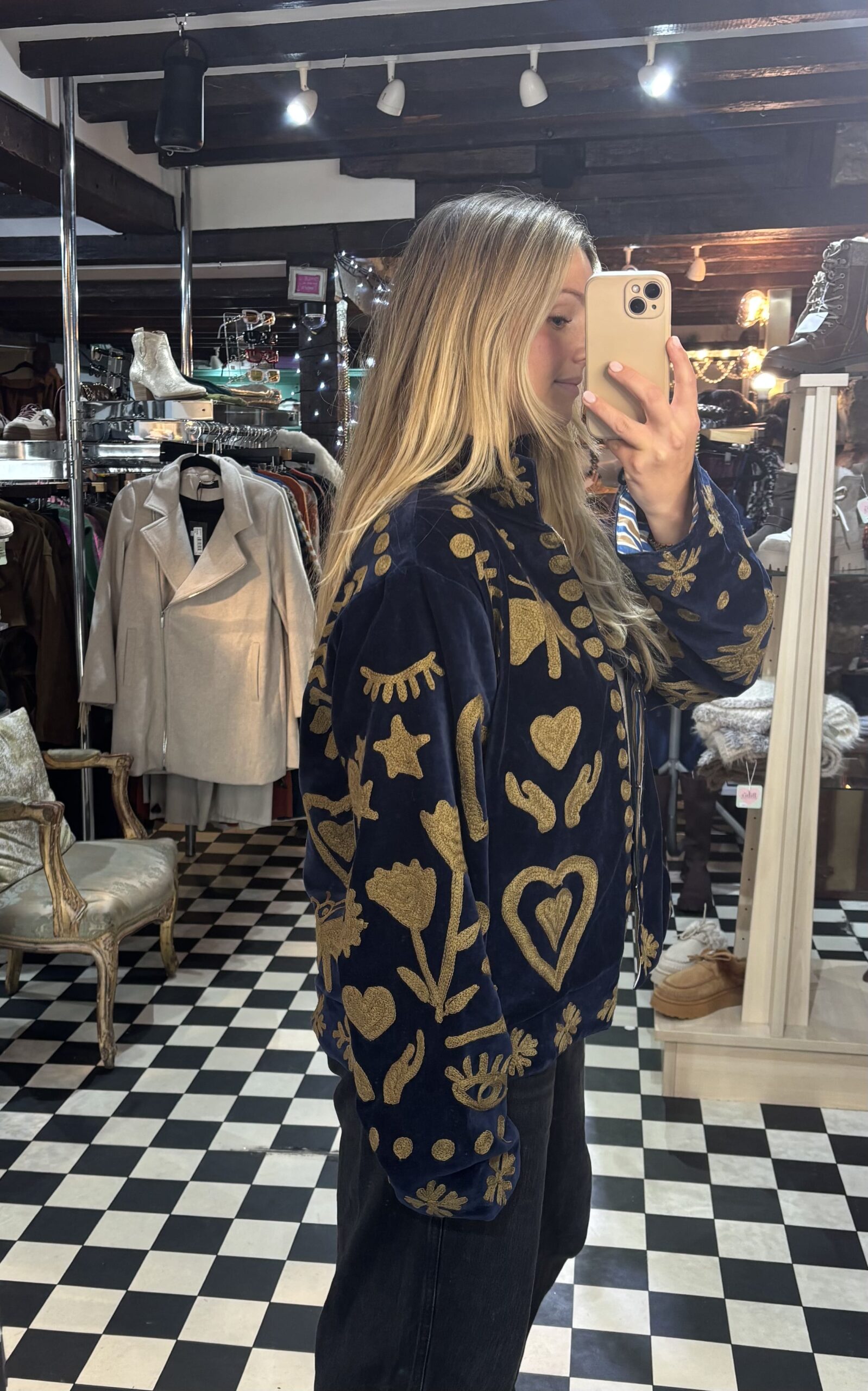 Embroidered ‘Love’ Navy and Gold Velvet Jacket