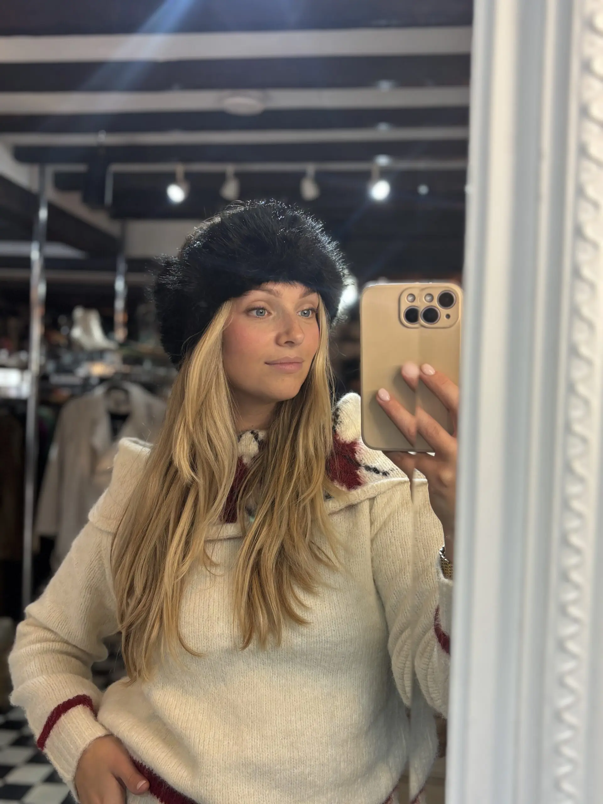 The cutest, fluffy faux fur headband to keep warm and cosy this winter 🫶🏼. One size and available in 3 colours – cream, taupe or black.