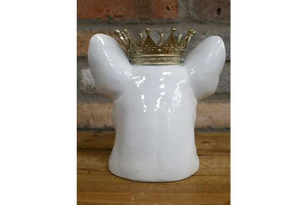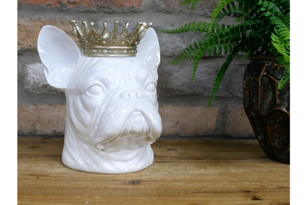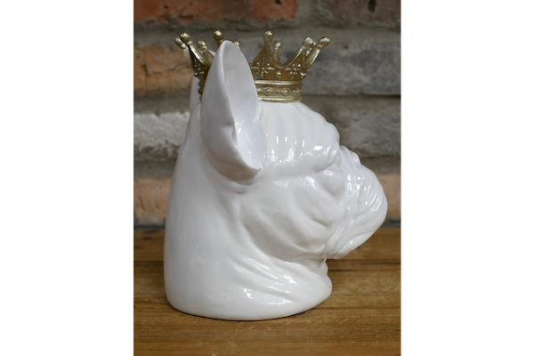 Elevate your home deco with this beautiful Frenchie bulldog wearing a gold crown ornament. Perfect addition for any frenchie lover.