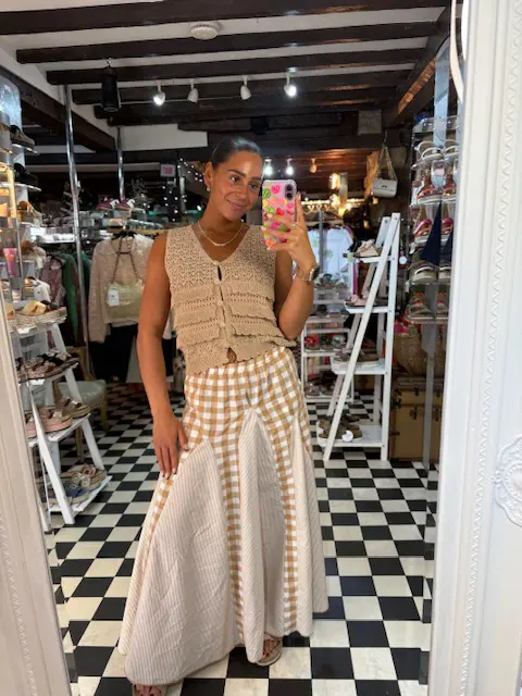 Fun and unique style gingham print maxi dresses help elevate your looks.