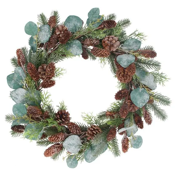 Lovely addition to any home, this artificial eucalyptus & pine cone wreath, by Gisela Graham.