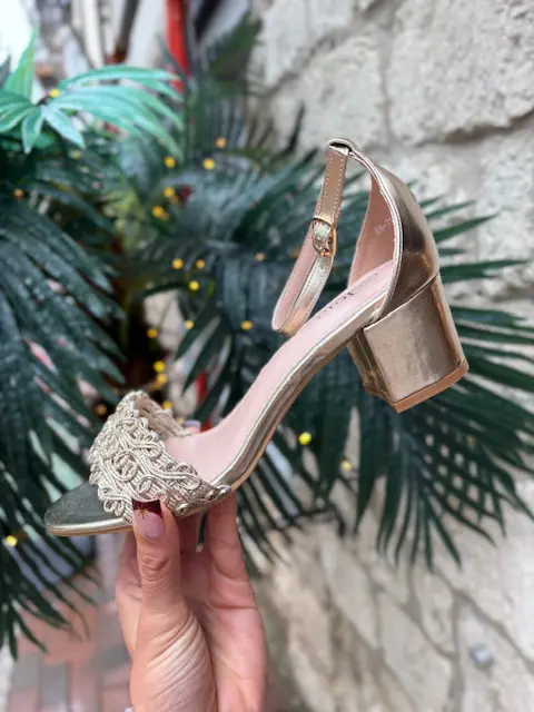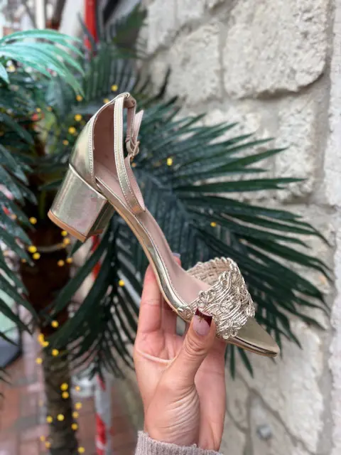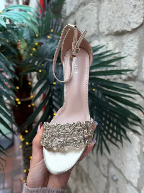 The perfect and simple gold block heel sandal. Easy and comfortable to wear and can be paired with almost anything for whatever occasion you need.
