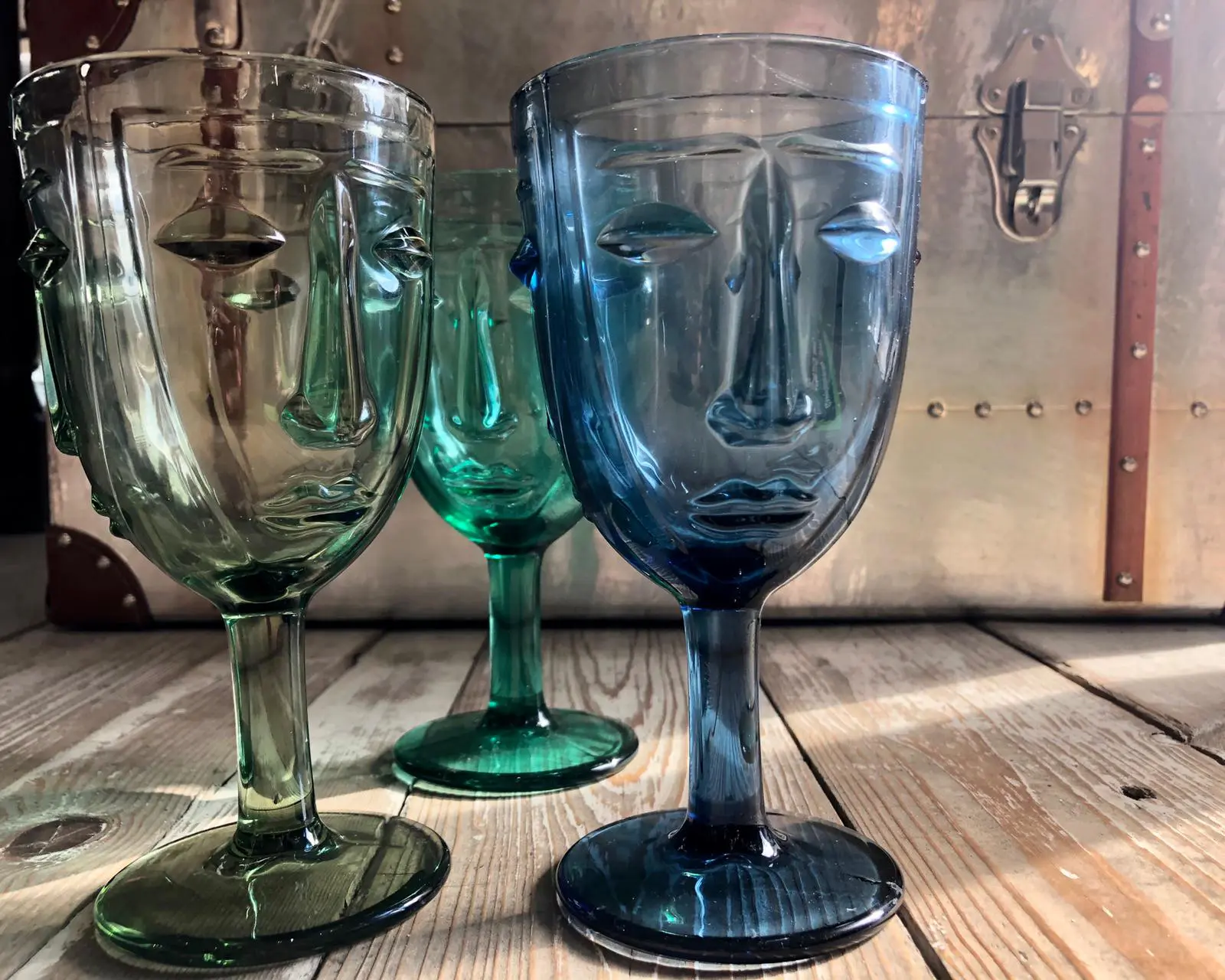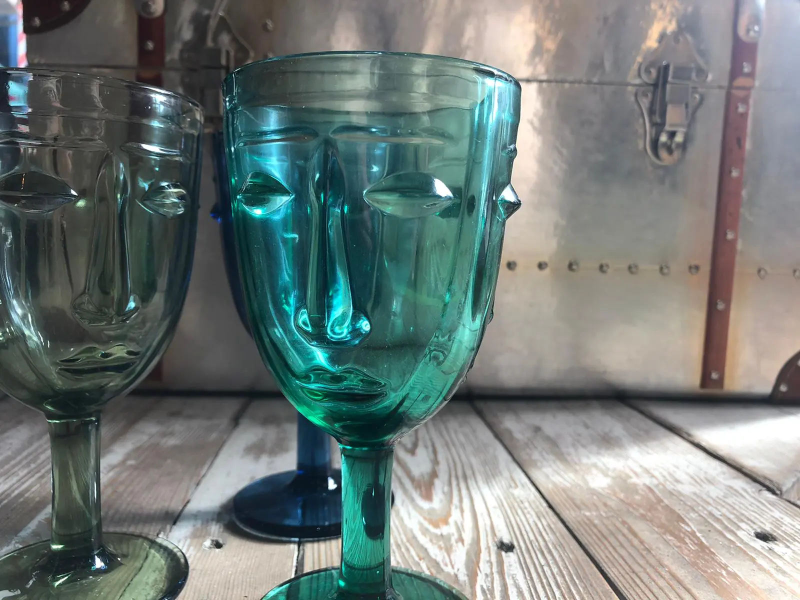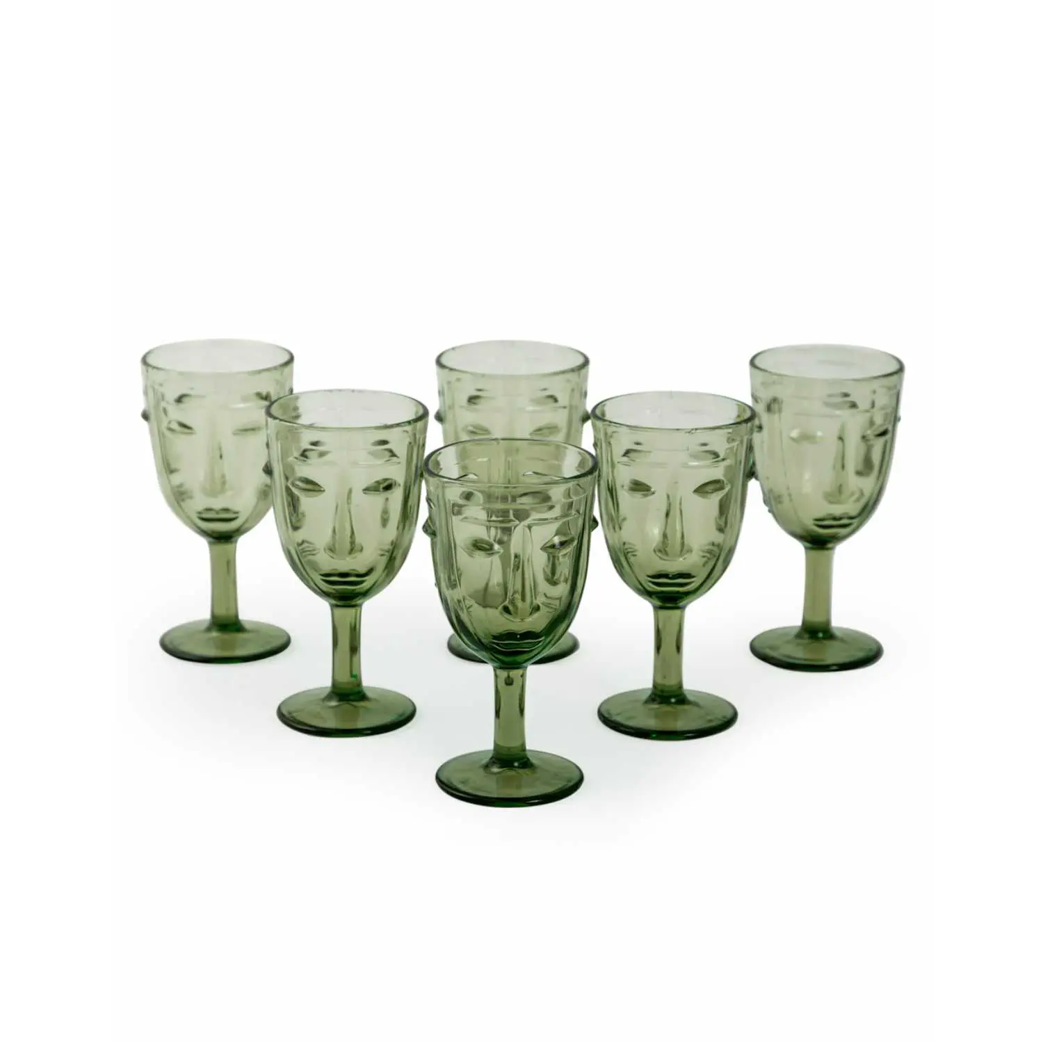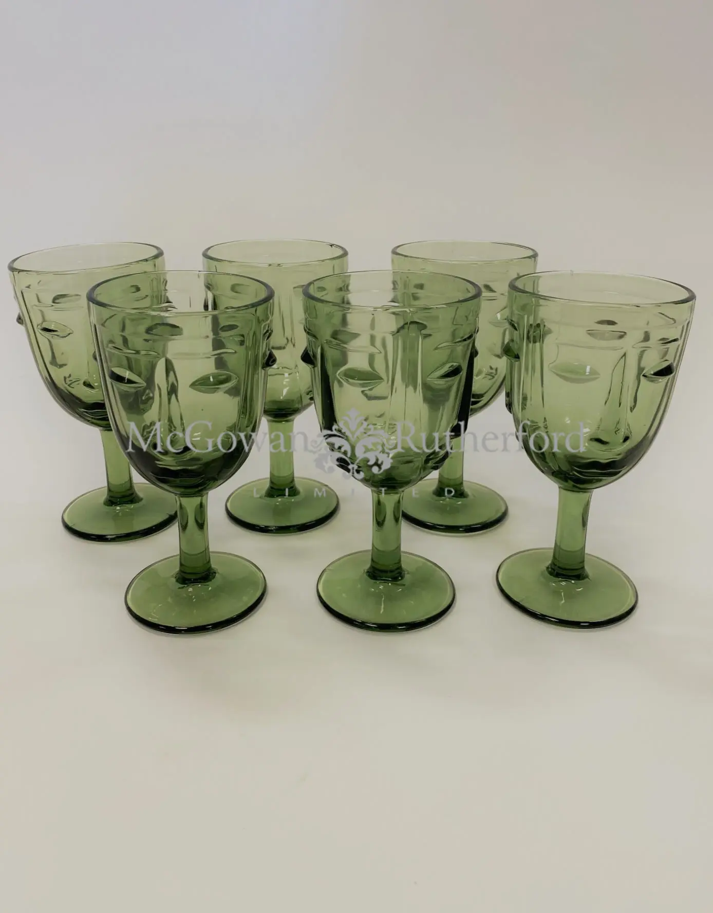 Set your table for a perfect wine and dine experience with these Green Deco Face Wine Glasses. The perfect addition for any household. Ideal for barbecues and parties, these durable and generously sized glasses are great for serving a variety of different wines.