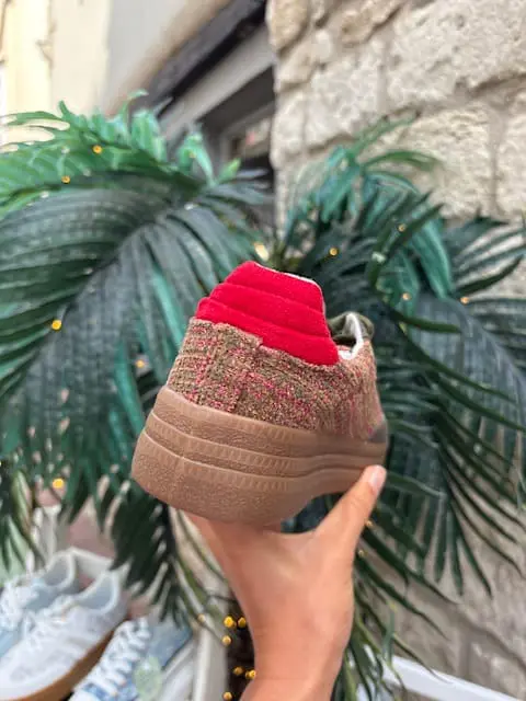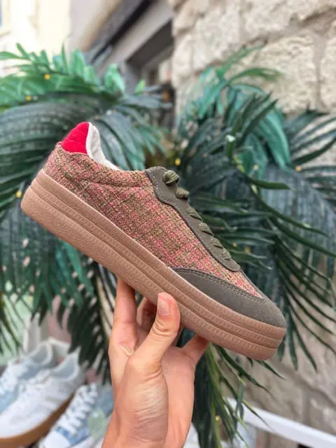 Beautiful new trainer features a slightly platform Gumsole sole. Super comfortable and easy to wear.