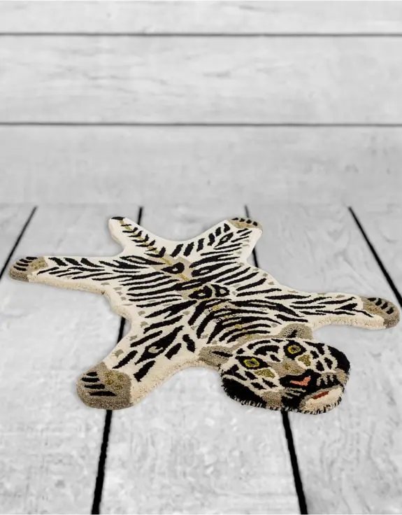 Hand Tufted Small White Tiger “Skin” Woollen Rug