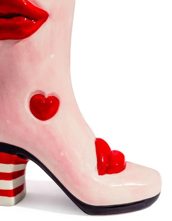 HEARTS & LIPS HEELED-BOOT CERAMIC VASE