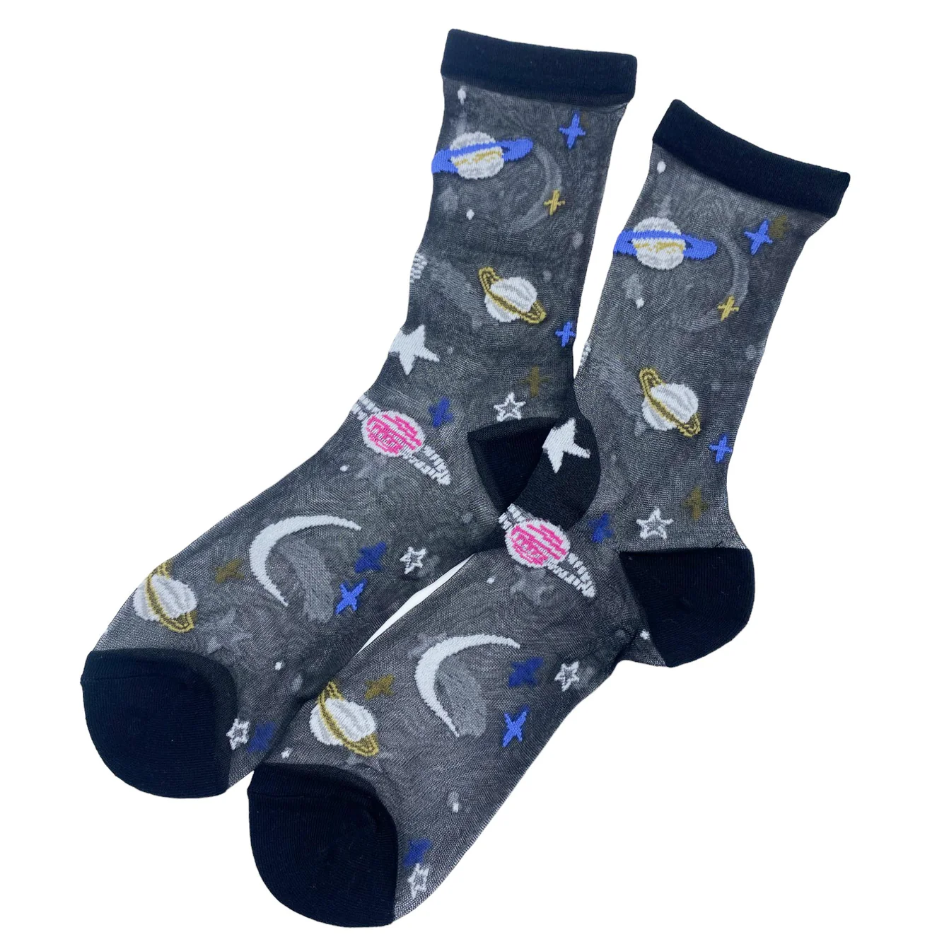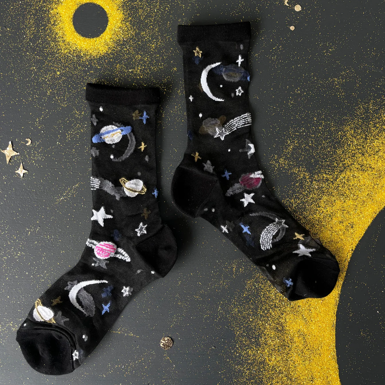 Treat yourself to a touch of cosmic elegance with these gorgeous sheer socks. Adorned with glittery stars and planets, these socks will make your toes feel like they’ve stepped into another galaxy. Alight with twinkling constellations and shooting stars, these socks would make a lovely gift for fans of stargazing.