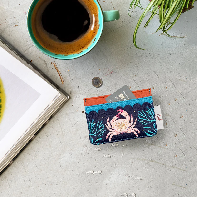 Features: Our bestselling Coral range just got bigger! A colourful crab cardholder for all your reciepts and cards. With 4 card slots, gold highlighting and a little inner compartment for extra bits, a super useful accessory for any bag or pocket.
