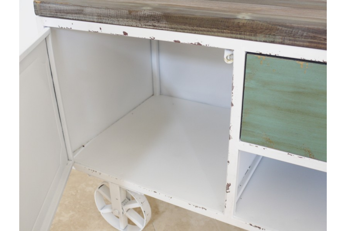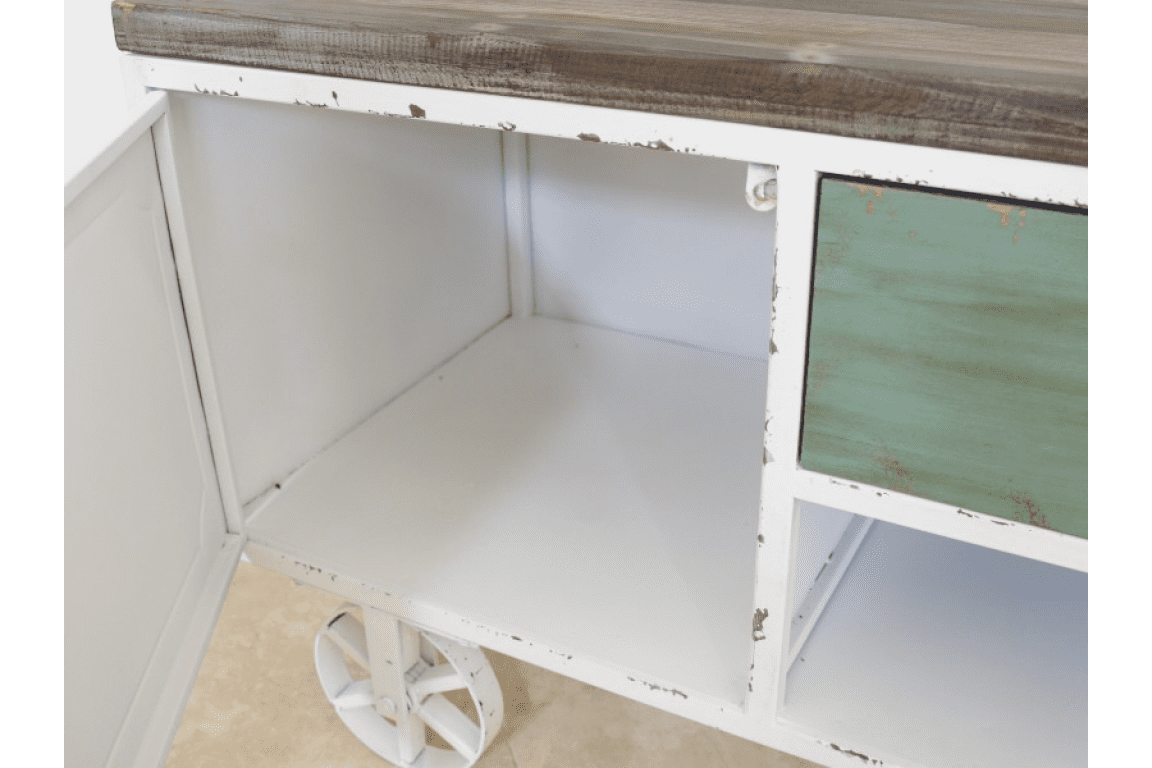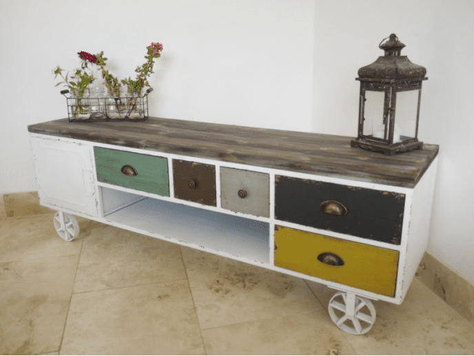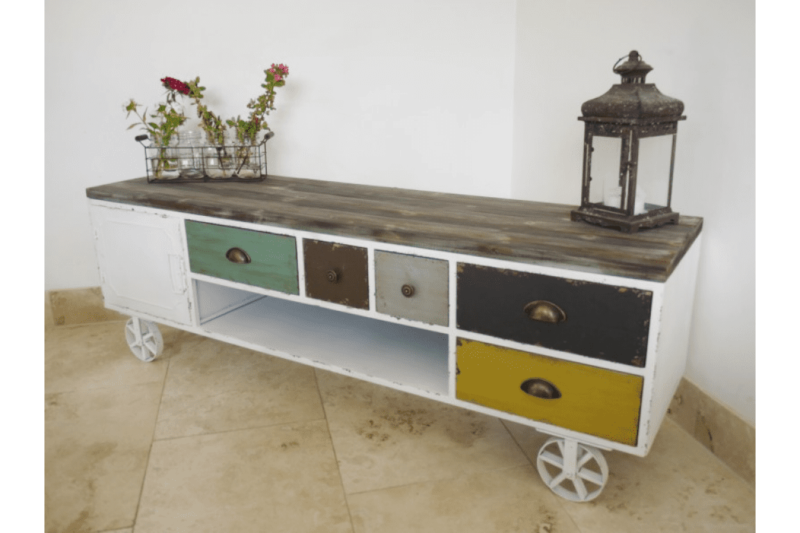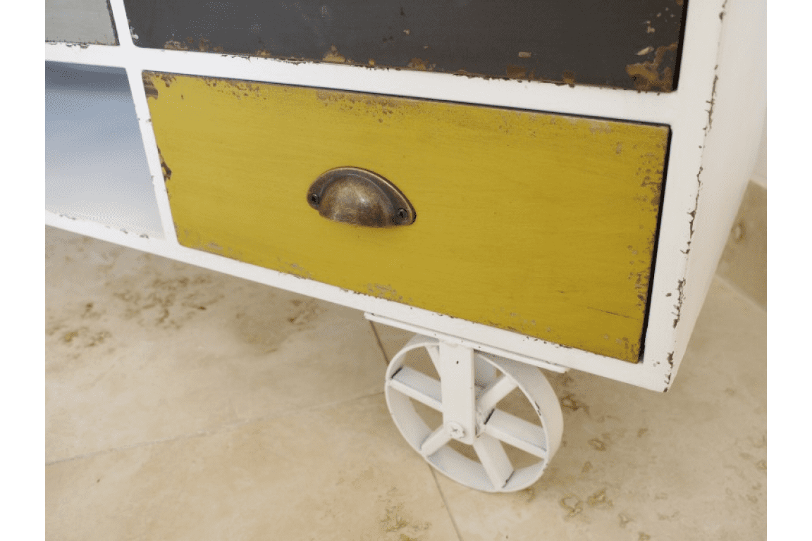 It has quirky metal wheels similar to a shepherds hut.