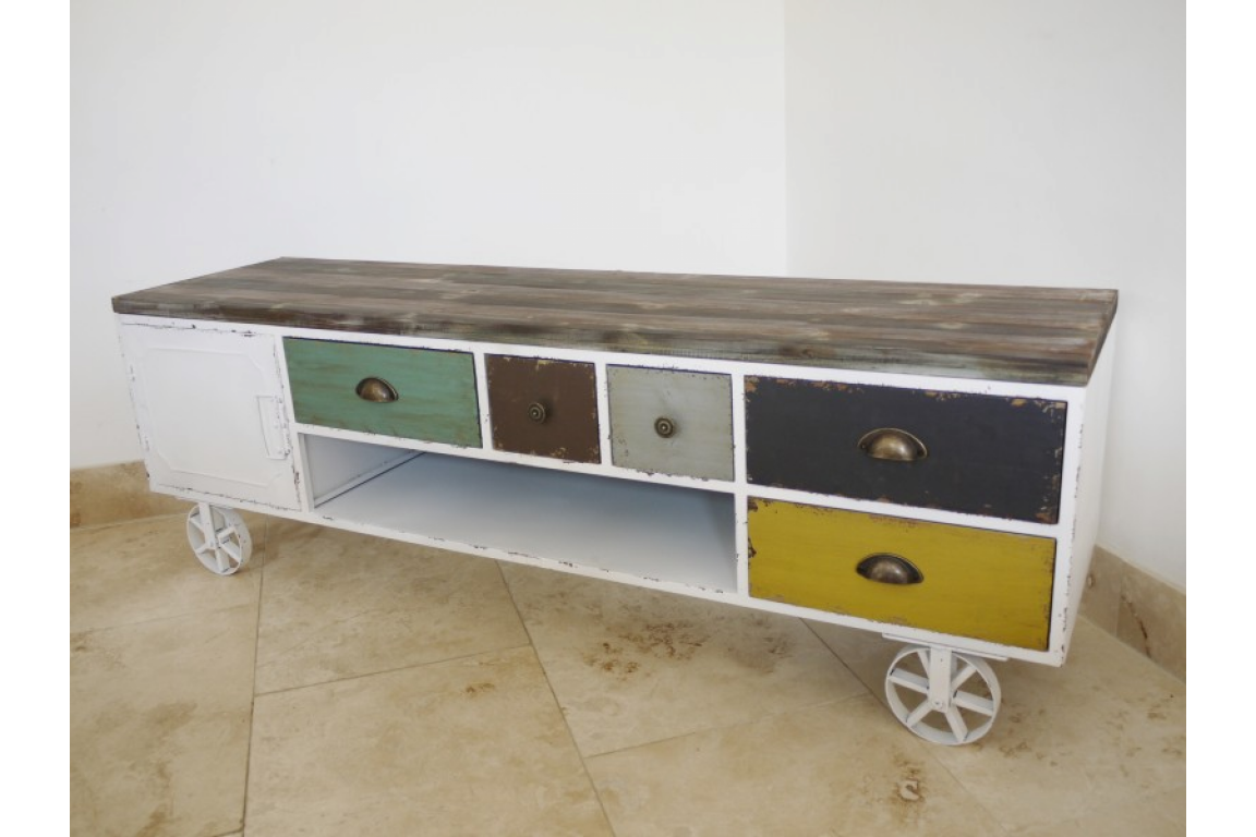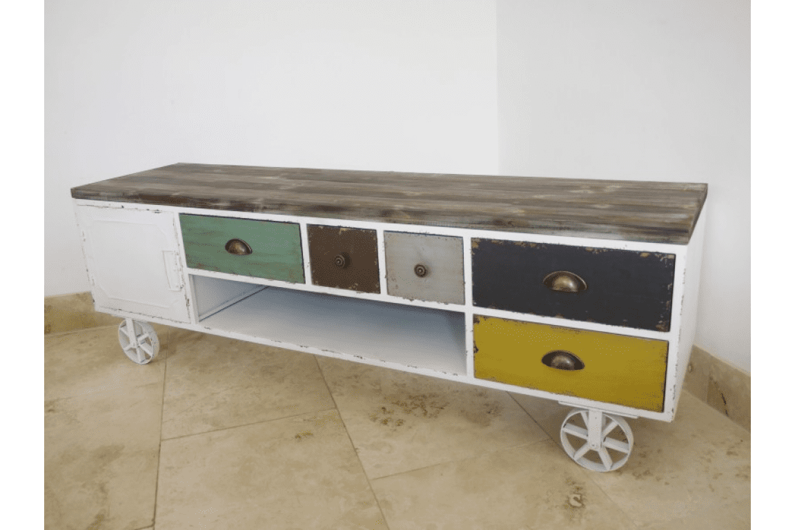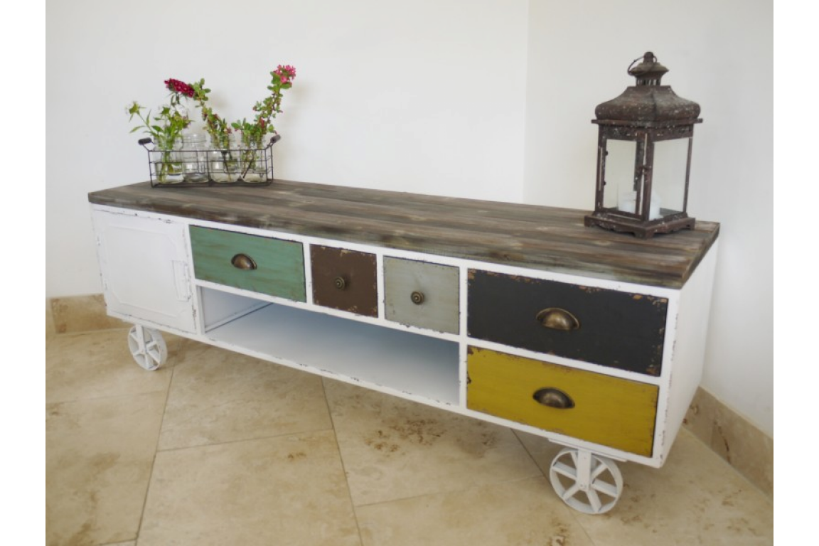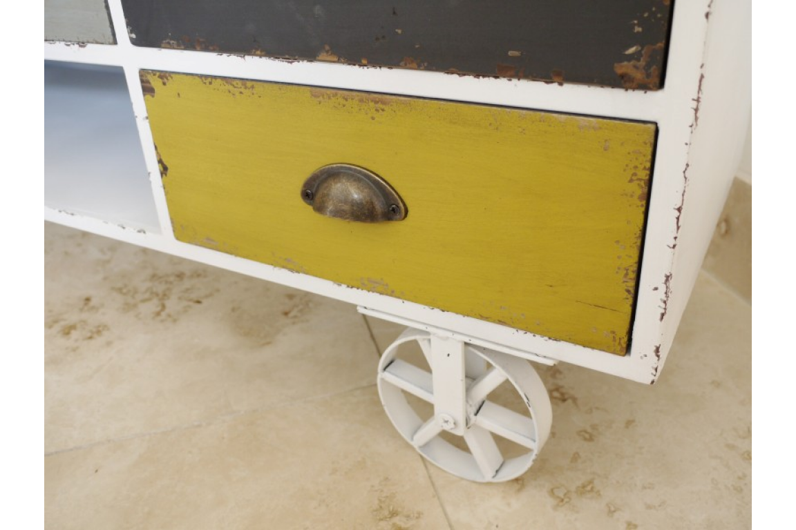 It has quirky metal wheels similar to a shepherds hut.