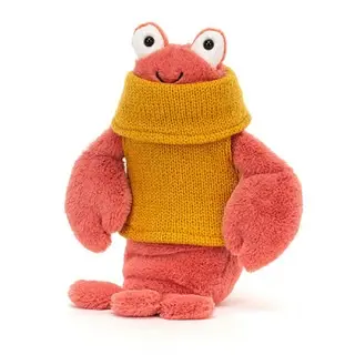 Cozy Crew Lobster is mellow in yellow, wearing a mustard rollneck jumper. Peachy-pink with squidgy segments, a soft split tail and boggly eyes, this loveable lobster is a great navigator! A kooky companion who knows all the best shanties!