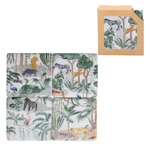 Set of 4 Coasters, jungle scene by Gisela Graham, lovely addition to any home, or as a gift.