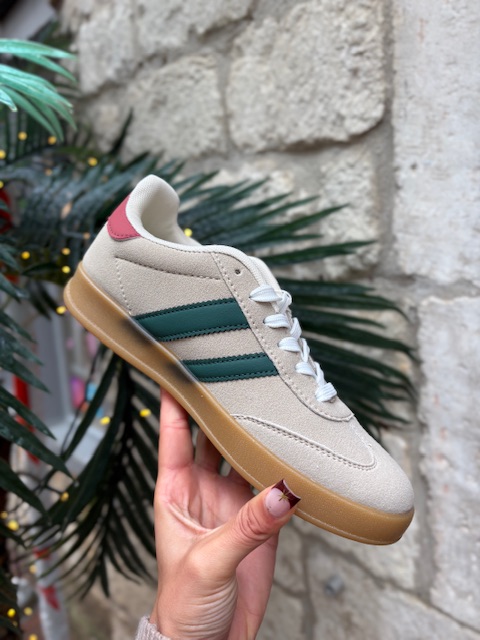 Nice neutral trainer features a Gumsole. Comfortable and can be paired with almost anything.
