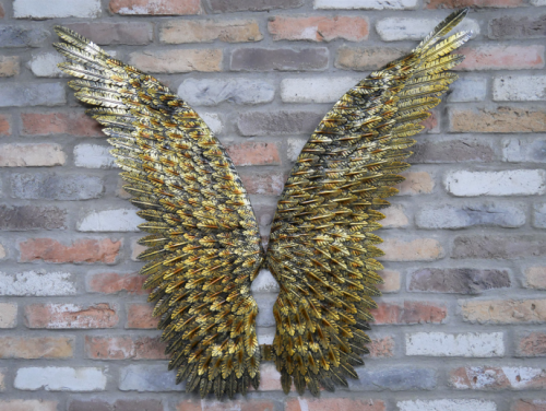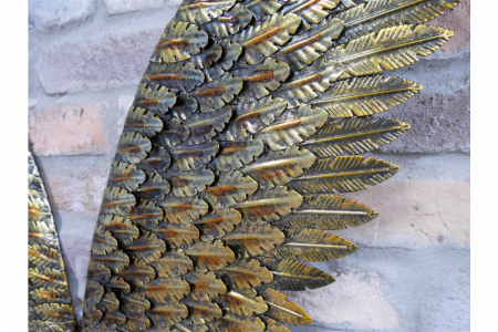 These beautiful wings make a statement wherever they are placed! Beautiful gold rustic finish, ideal wall decor could be placed above your bed, dining rooms and even if you want to draw people into your shops!