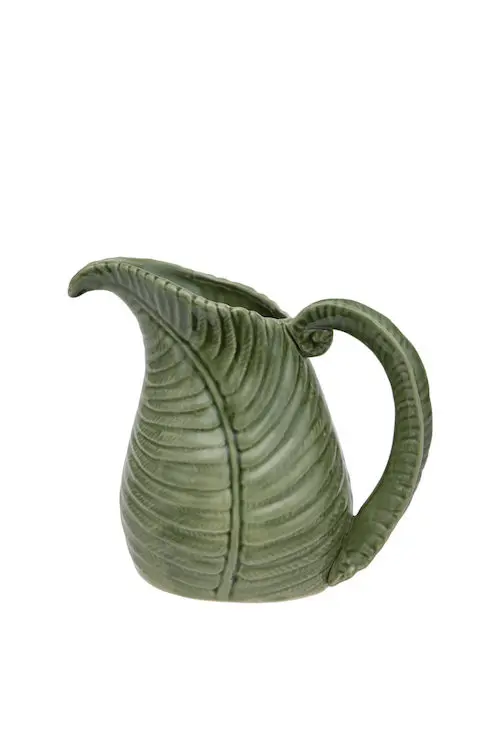Turn over a new leaf with this highly detailed leaf jug and bring the outdoors, indoors. This detailed jug could be used to display flowers or to fill to the brim with summer punch.