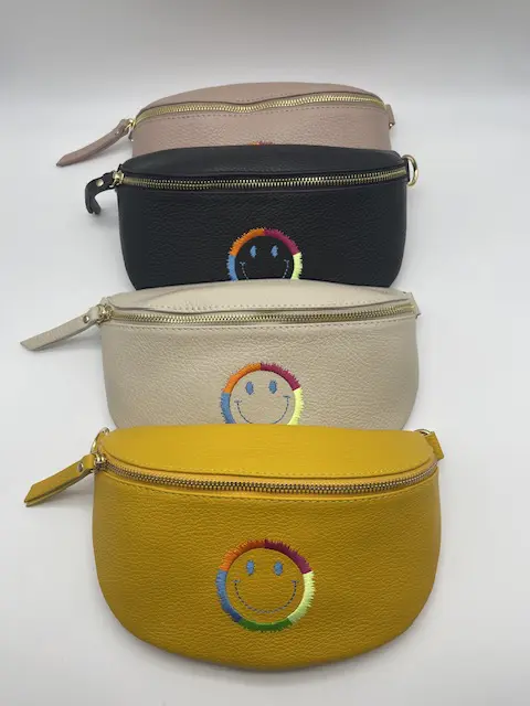 Bring some fun to your look with these smiley bumbags! Perfect for keeping those essentials close and safe to you while also looking good!