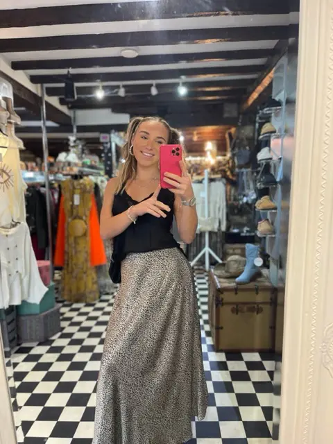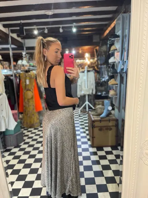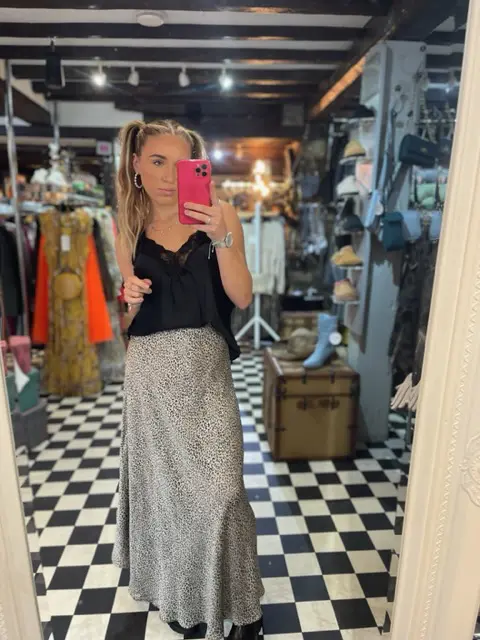 Beautiful silk maxi skirts are perfect for this season. Who doesn’t love a subtle bit of animal print? These flow gorgeously and look amazing paired with some big chunky boots or trainers. Elasticated waist for comfortable and easy fit.