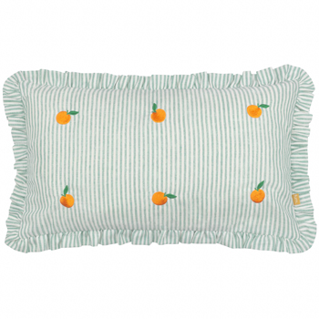 ‘Les Fruits’ Blue and White Stripe Cushion – Oranges
