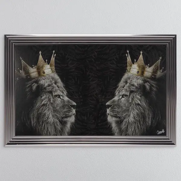 This stunning lion kings picture will bring an exceptional atmosphere to your home. The metallic frame brings a stylish look that will enhance any wall.