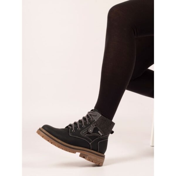- Fastenings: six eyelet lace-up and side zip