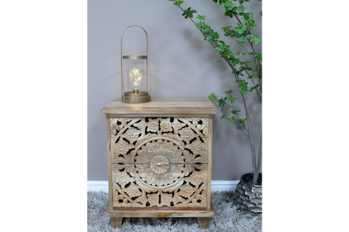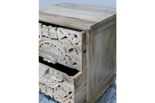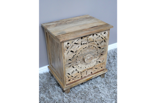Made form solid mango wood & carved with intricate detail this will compliment any bedroom.