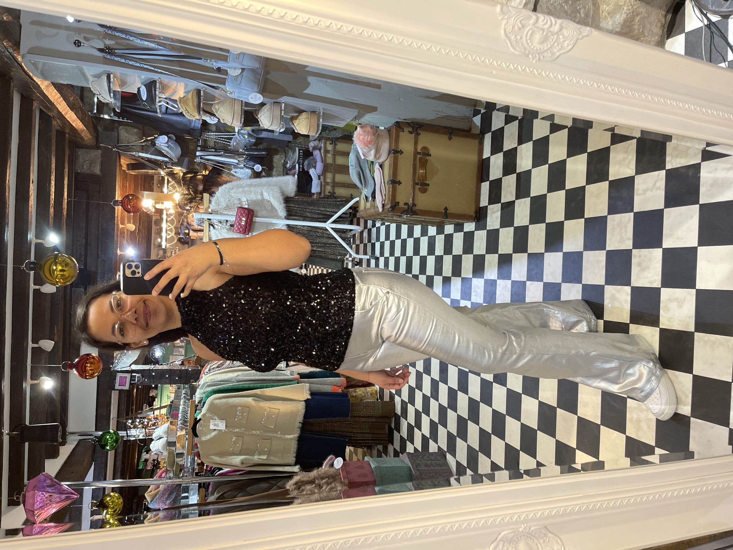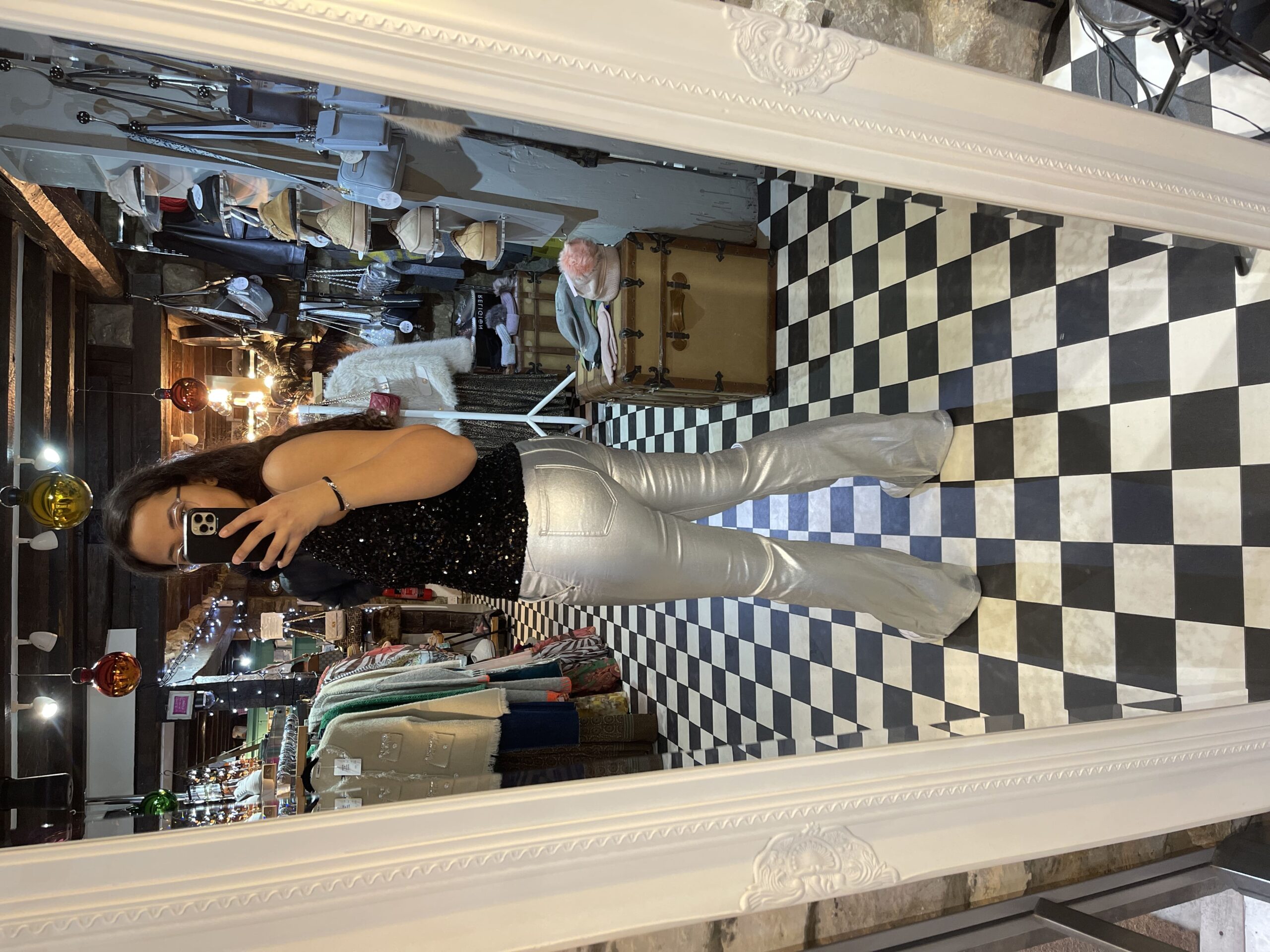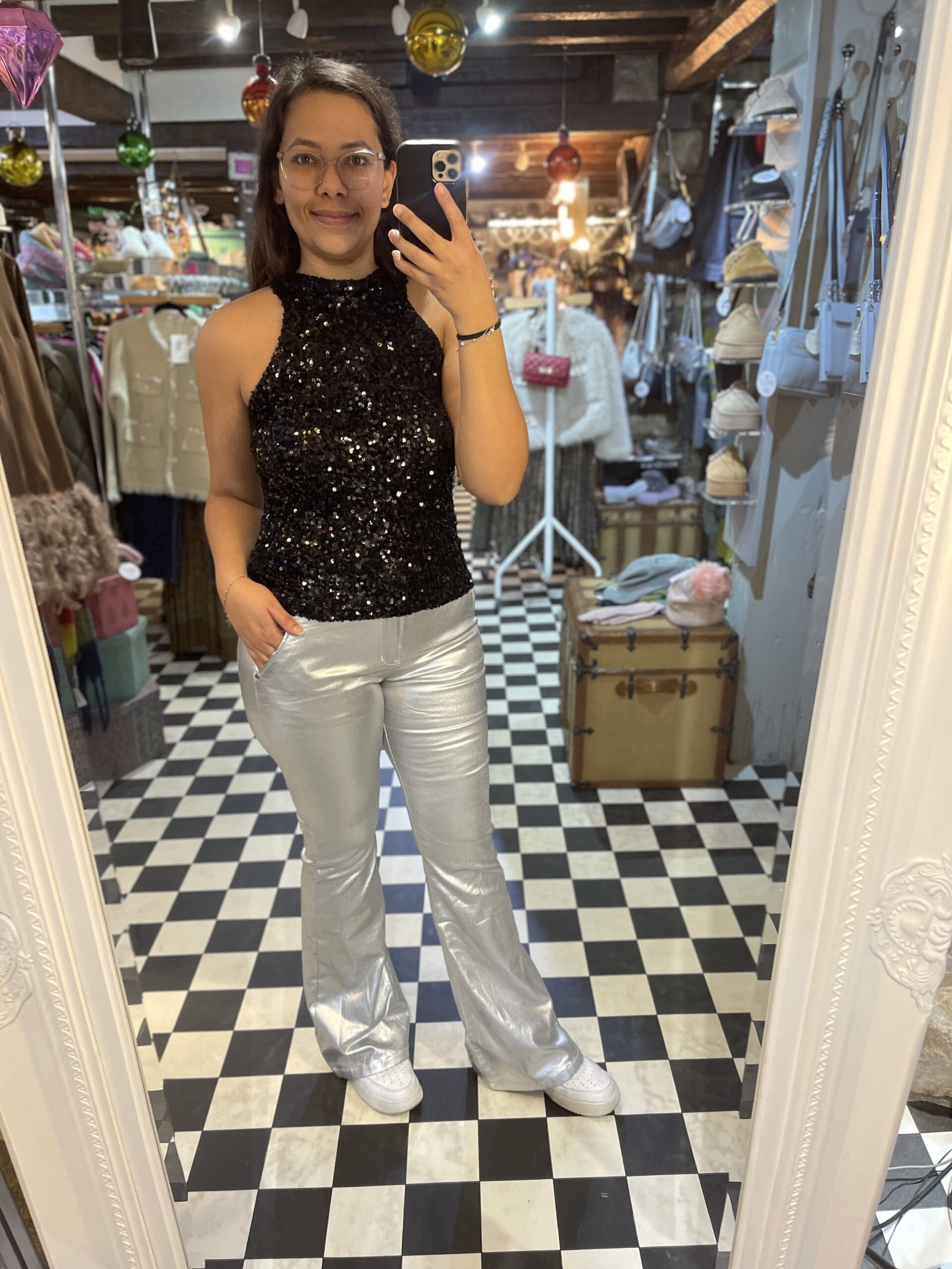 Bring some sparkle to your looks with this beautiful mid waist silver flares. They sparkle so beautifully in the light and can be worn for party or casual looks.
