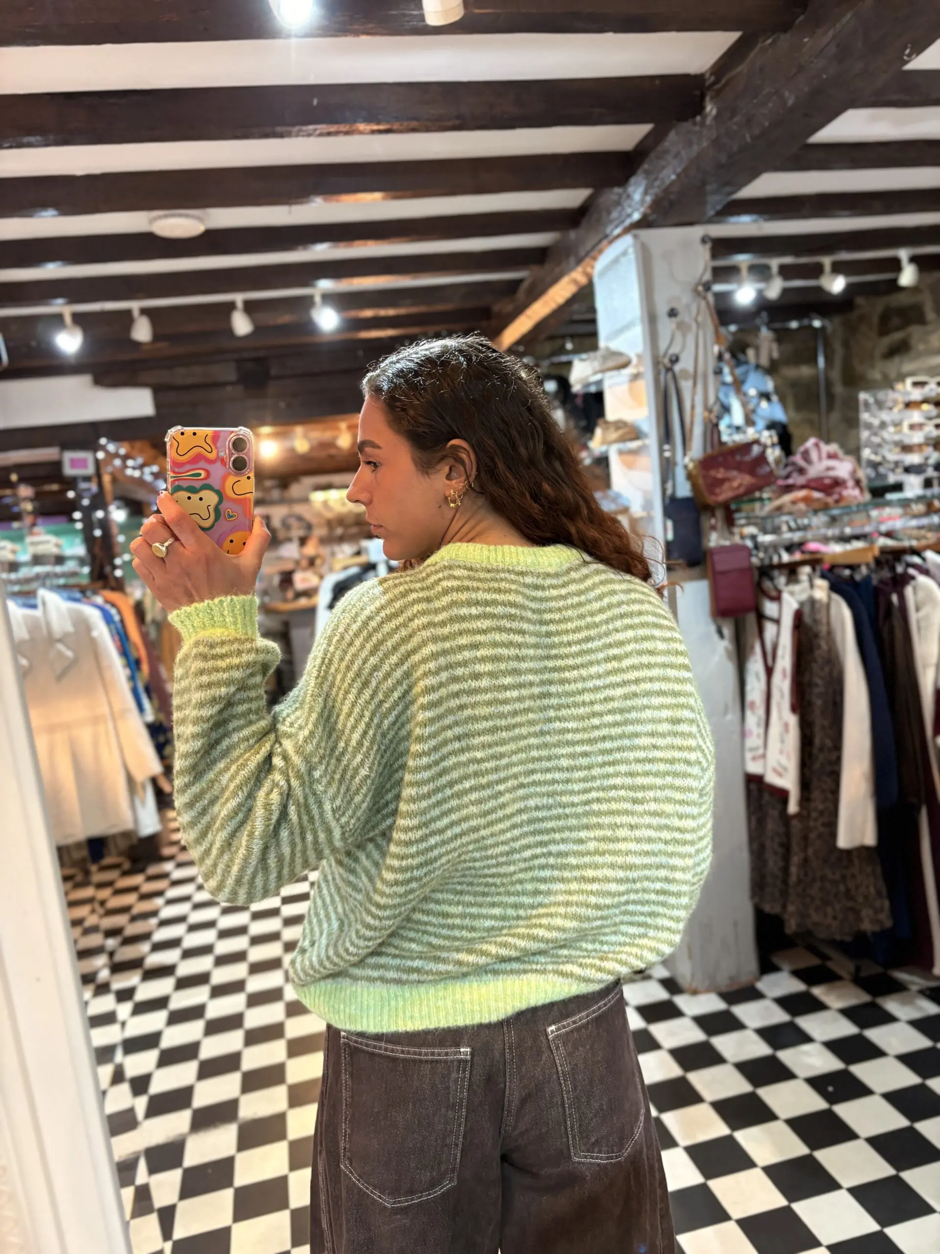 Lovely knit stripe jumper in a fresh mint green and sage mix of colours. Perfect for spring time.