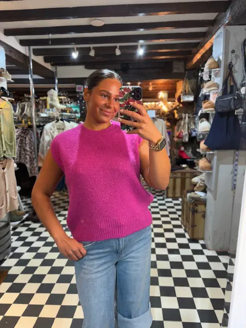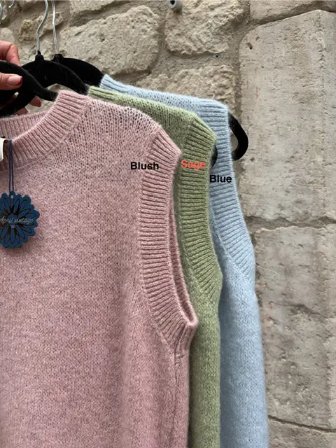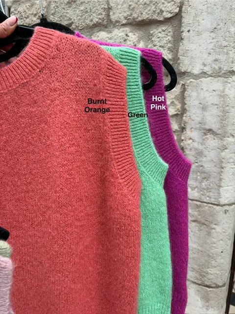 Gorgeous new waistcoat style jumpers in 6 fun and fresh colours ready for spring / summer! These can be worn on their own or layered over other tops and shirts. Cosy, warm, cute and comfortable what’s not to love!